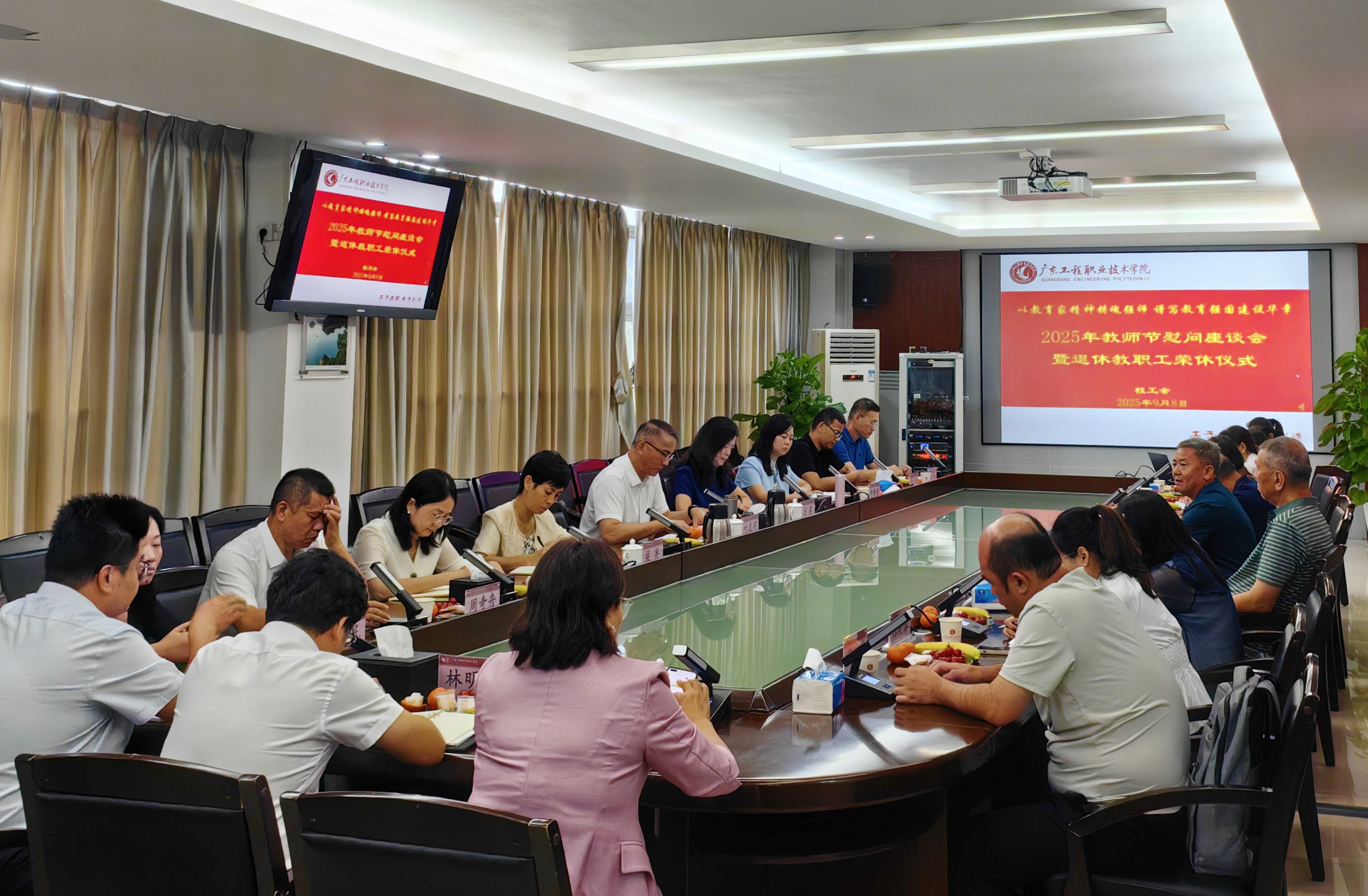 在第41个教师节即将到来之际,9月8日上午,学校工会在广州校区办公楼615会议室举办“以教育家精神铸魂强师,谱写教育强国建设华章”为主题的教师节慰问座谈会暨退休教职工荣休仪式。学校党委书记叶忠明、工会委员、荣休教职工代表、受慰问教师及相关部门负责人欢聚一堂,致敬奉献、畅谈未来。活动由校工会主席方燕主持。