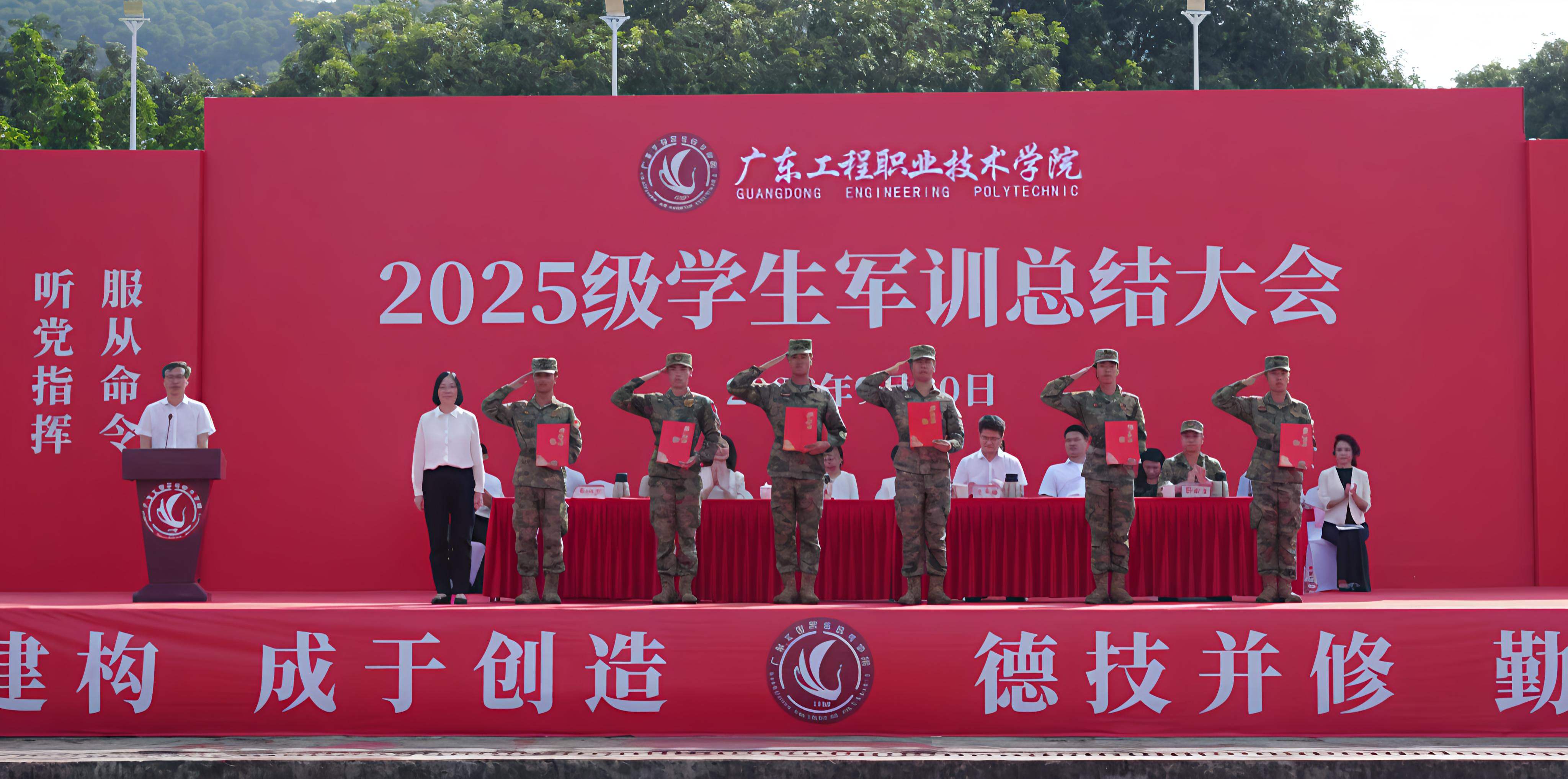 9月30日,学校分别在省职教城校区、广州校区召开2025级学生军训总结大会。学校领导,各二级学院党委书记,军训工作领导小组成员单位党政办公室、武装部、学生工作部、教务部、总务后勤部、团委负责人,二级学院党委副书记,新生辅导员,全体新生,承训部队领导与教官出席本次总结大会。学校党委委员、副校长张小广,党委委员、副校长张永强分别主持了两校区总结大会。