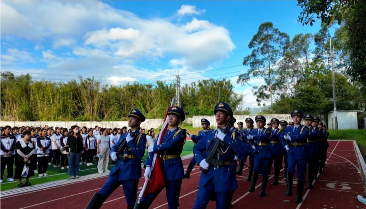 为厚植爱国主义教育情怀,搭建校地协同育人桥梁,10月20日上午,我校国旗护卫队全体队员走进清远市新桥学校,开展“大手拉小手”爱国主义教育主题活动。活动通过庄严的升旗仪式、生动的红色故事分享与沉浸式军事装备体验,为学生们带来了一堂别开生面的“行走的思政课”。