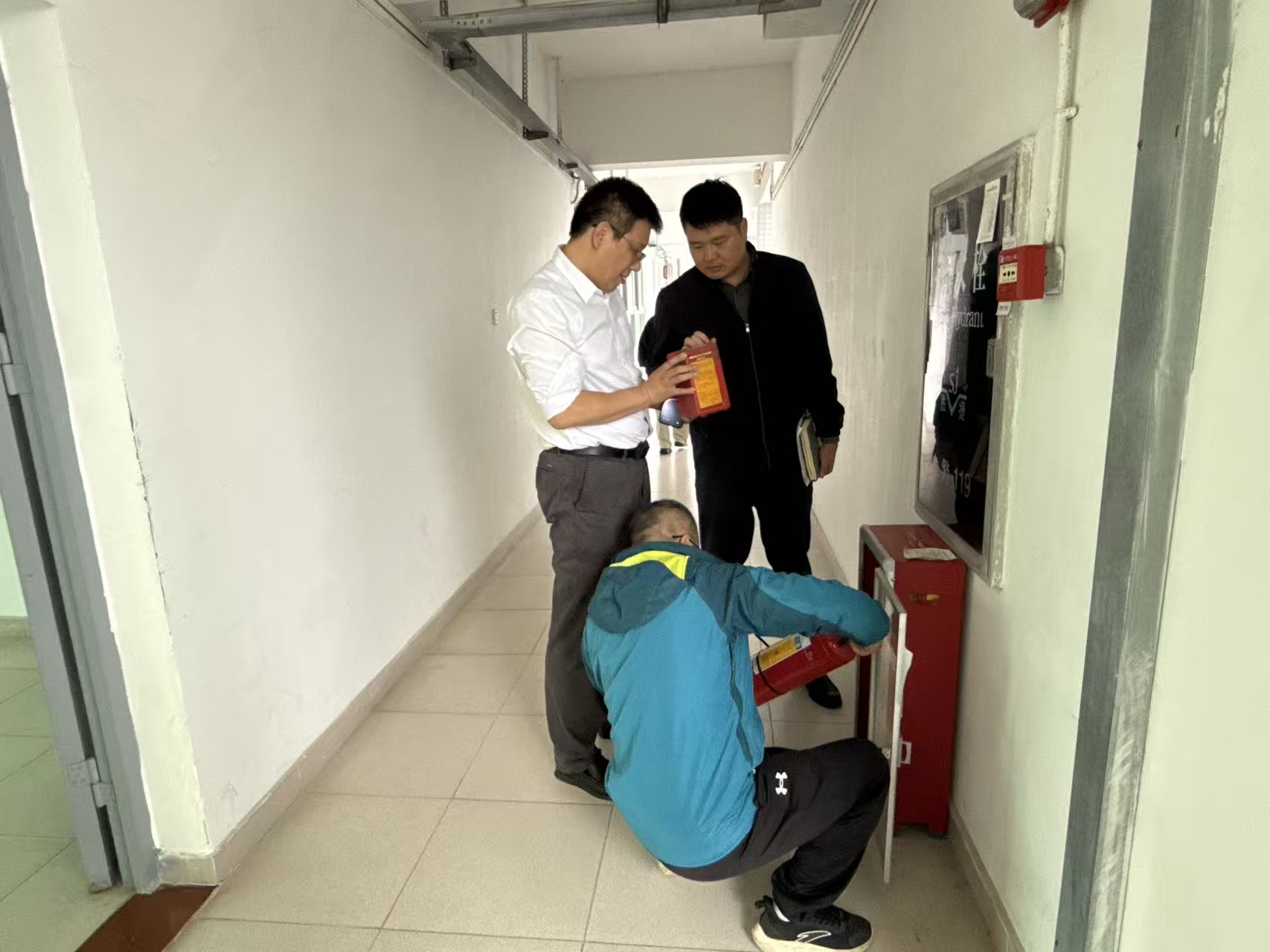 张永强一行直赴现场,分别到教学楼、学生宿舍、教师公寓、快递站等人员密集场进行实地检查,重点检查了各高层建筑的消防水压、应急照明、自动报警系统等的运行状态。每到一处,张永强详细了解开学相关安全保障的落实情况,对消防安全、生产安全等进行重点检查,并听取现场负责人员汇报准备工作的进展情况。