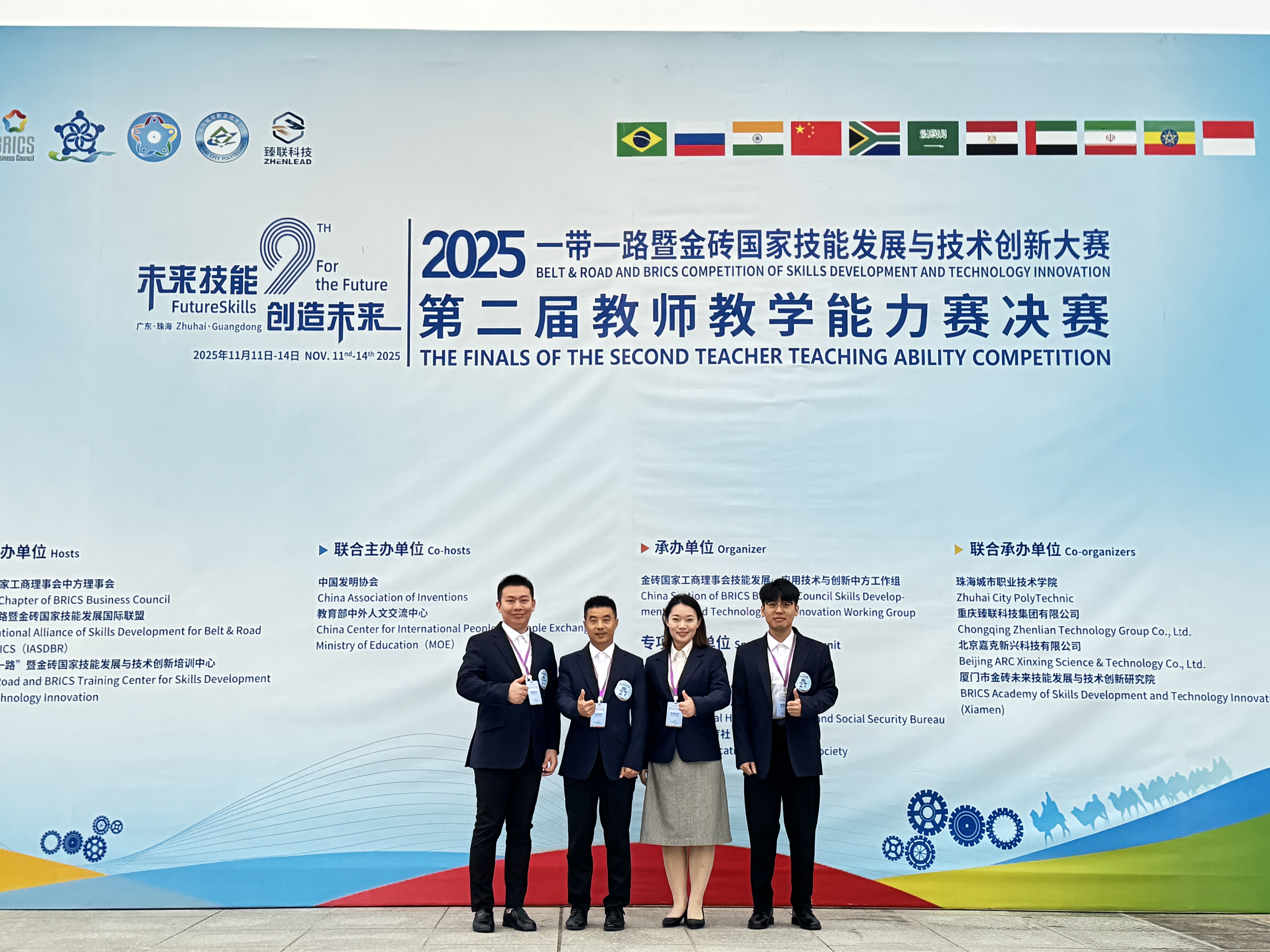 在校内赛事中脱颖而出的优秀教师团队,经学校推荐参加2025年一带一路暨金砖国家技能发展与技术创新大赛之第二届教师教学能力赛,共4支队伍进入国内决赛。经过激烈角逐,我校3支参赛团队凭借出色的课程设计、扎实的教学功底和良好的团队协作,最终取得优异成绩。