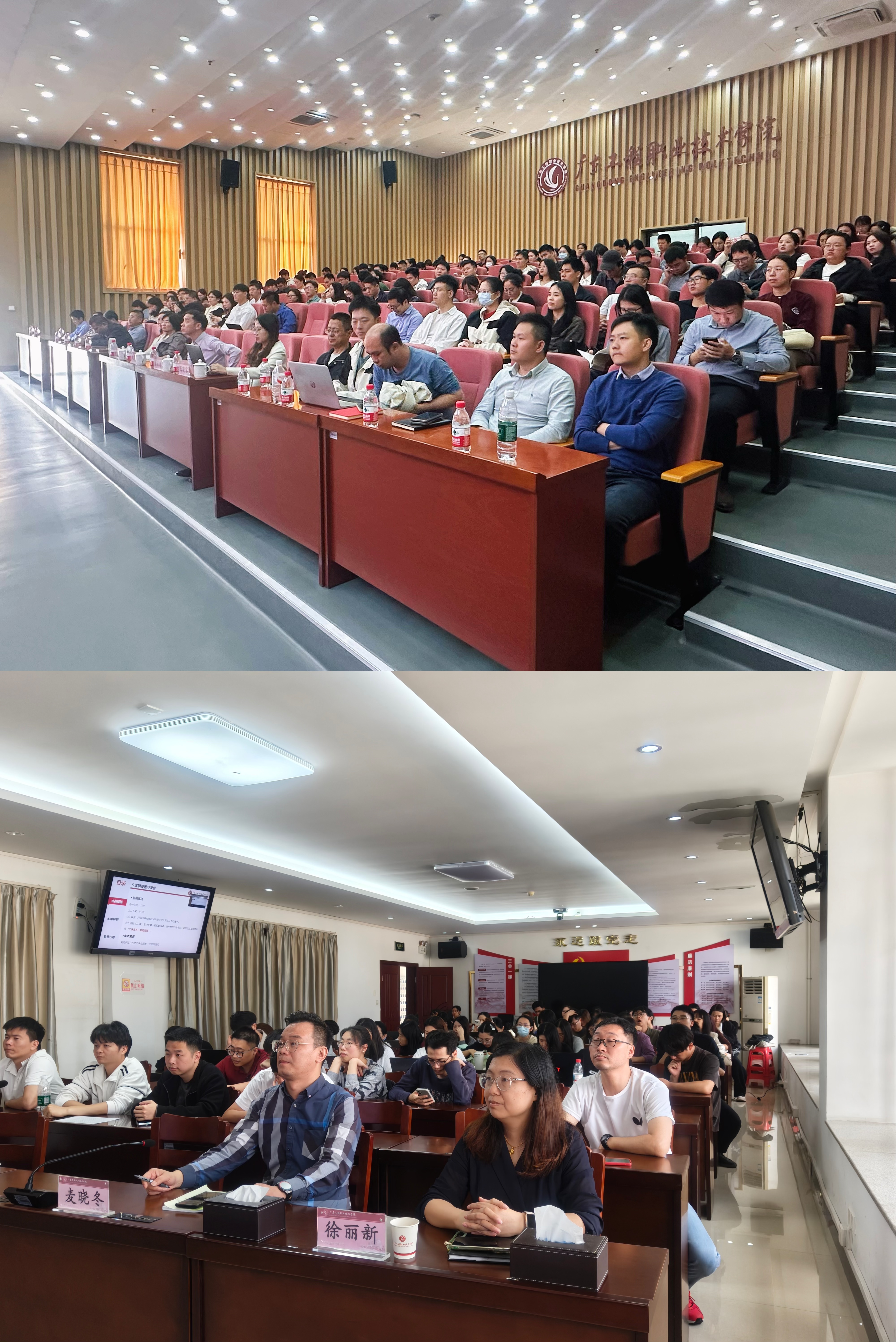12月24日下午,学校工会联合教务部在两校区同步举办第十届青年教师教学大赛暨省赛备赛专题培训,邀请了两位广东省第七届高校(高职)青年教师教学大赛一等奖的青年教师现场培训。校工会、教务部、各学院分管教学院长、副院长及40周岁以下青年教师近250人参加培训,学校工会专职副主席黄馥丽主持。