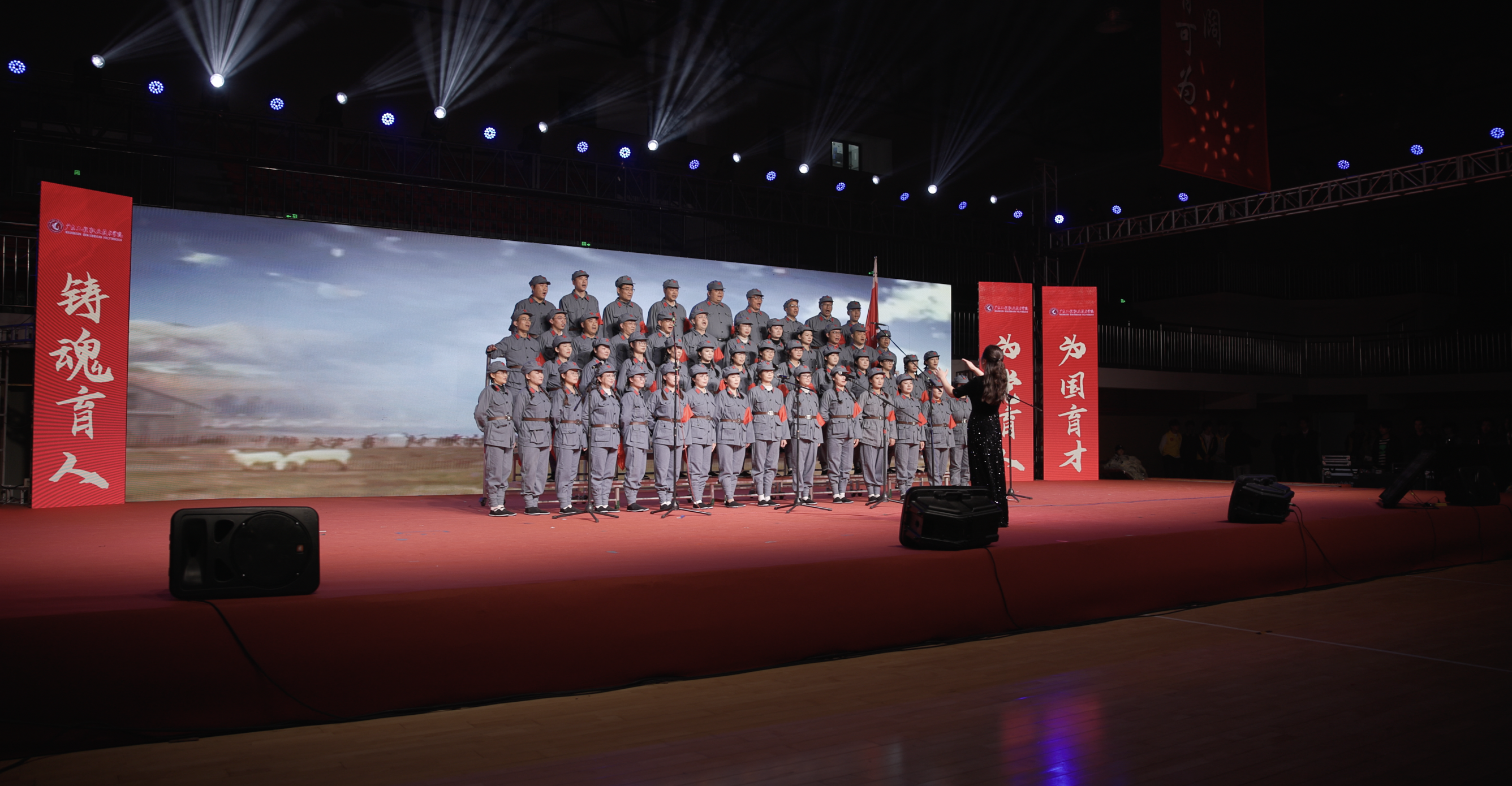 展演尾声,与会师生共同齐声合唱《国际歌》等经典红色歌曲,展演在观众热烈持久的掌声中圆满落幕。