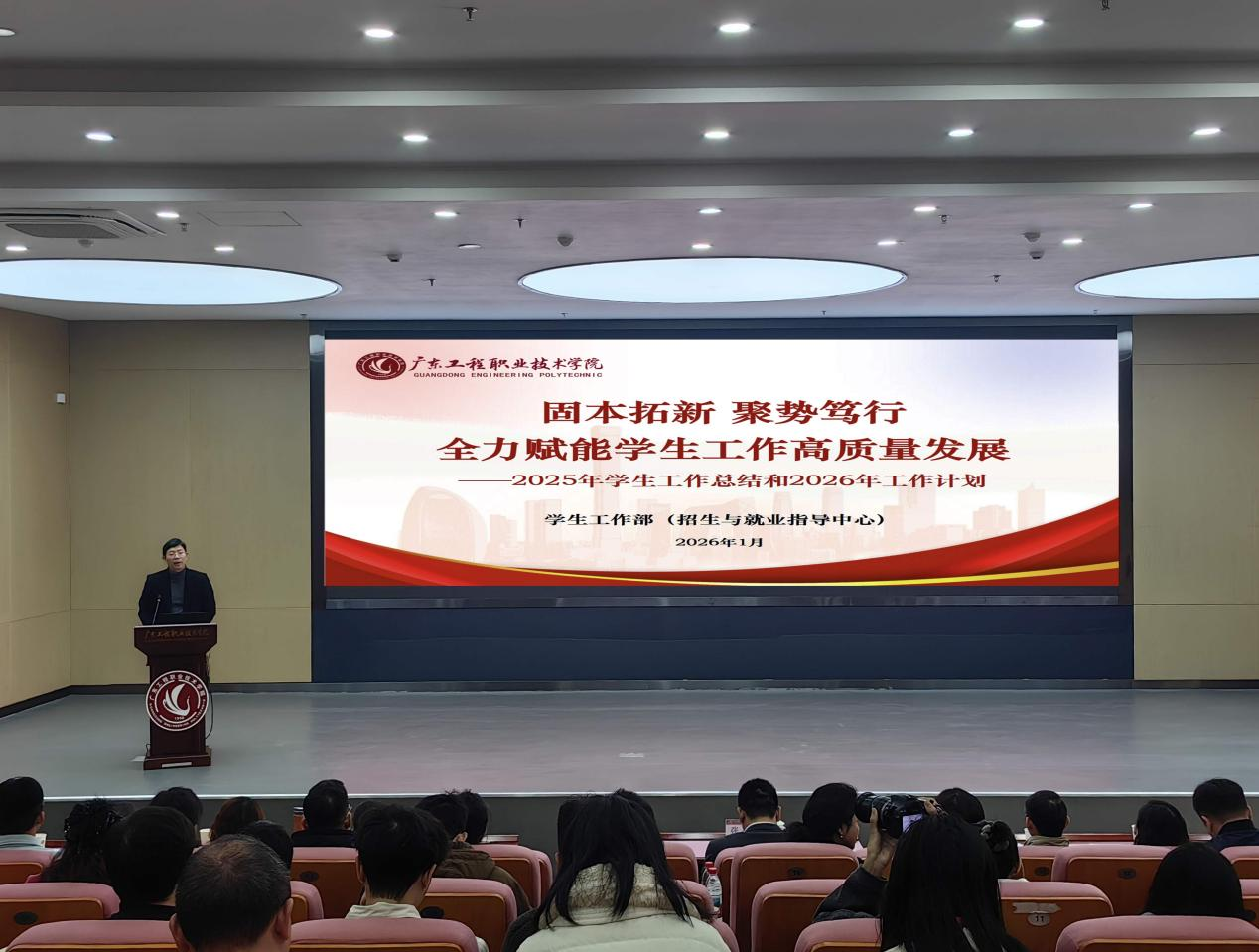 此次学生工作总结大会全面复盘2025年学生工作的成效与不足,凝聚了学工队伍的思想共识,明确了2026年的工作方向与实践路径,为推动学校学生工作高质量发展、助力“双高”建设奠定了坚实基础。