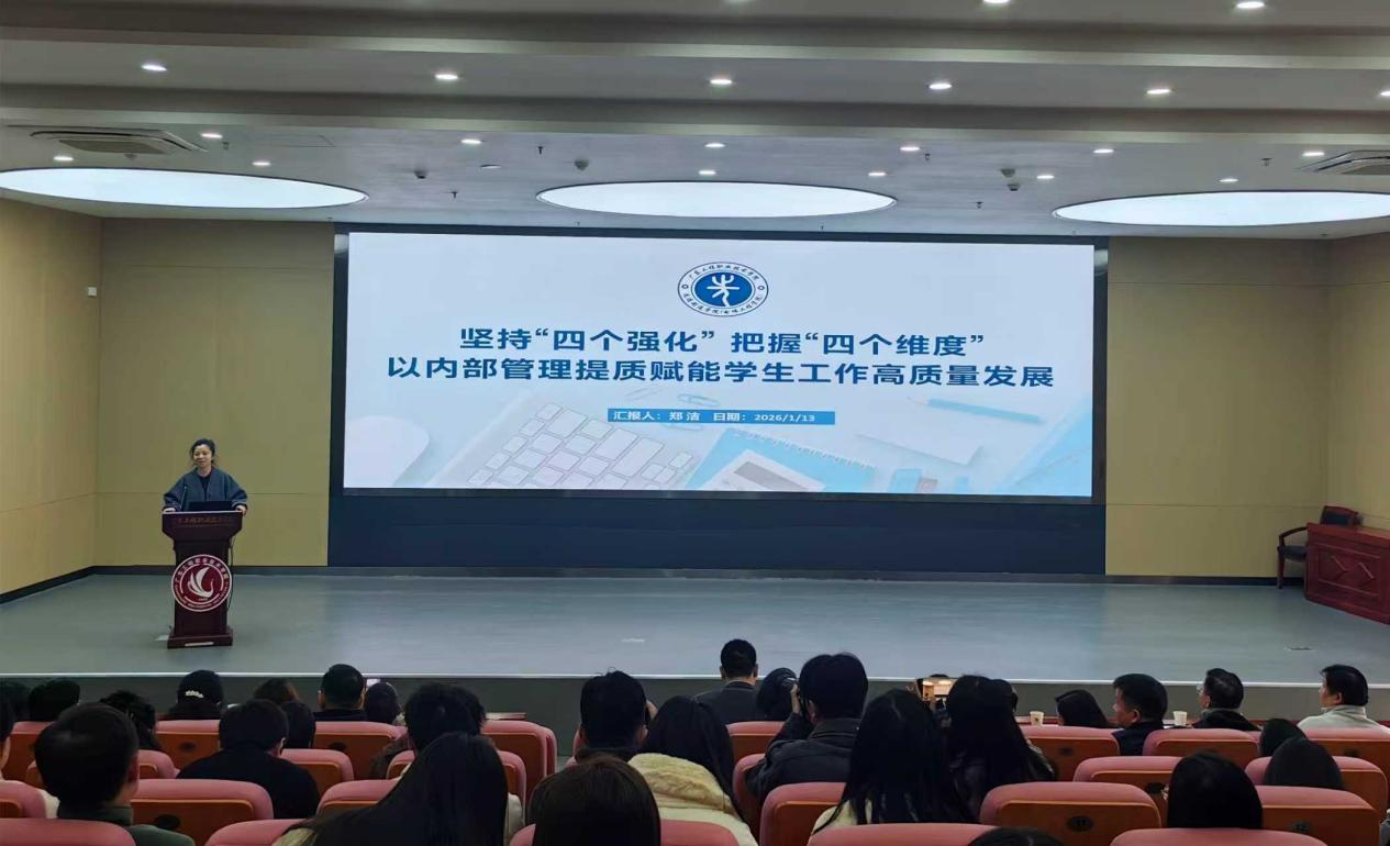 会上,吴华长部长从思政引领、日常管理、“一站式” 学生社区、学工数智化、辅导员队伍建设、心康教育、招生改革、就业工作、资助育人、校友工作等方面,系统总结2025年学生工作总体成效,梳理工作亮点与特色,深入剖析存在的问题与不足,介绍了2026年工作思路。他强调,2025年学生工作部圆满完成各项工作任务,取得系列突破性成效,未来一年要继续紧扣立德树人根本任务,以提质增效为目标,系统谋划、精准发力,全面推动各项工作再上新台阶。