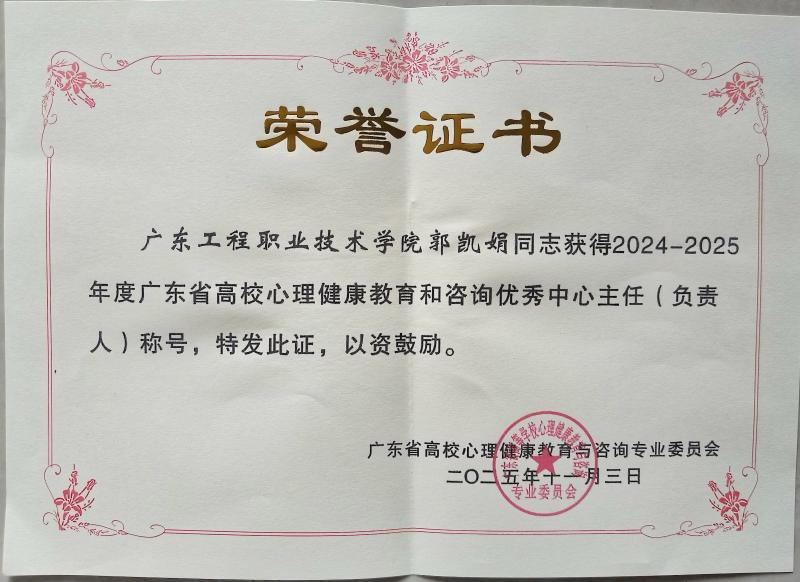 2025 年11月3-4日,2024-2025 年度广东省高校心理健康教育与咨询专业委员会学术年会在中山召开。大会由广东省高校心理健康教育与咨询专业委员会主办,全省近百所高校学生工作相关领导、专兼职心理老师代表共240余人参会。大会表彰了广东省高校心理健康教育与咨询工作先进集体71所、广东省高校优秀心理中心主任(负责人)45人、先进个人80多人、优秀论文(一等奖18个)及出版物20个。