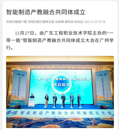 11月27日,由广东工程职业技术学院主办的“一带一路”智能制造产教融合共同体成立大会在广州举行。