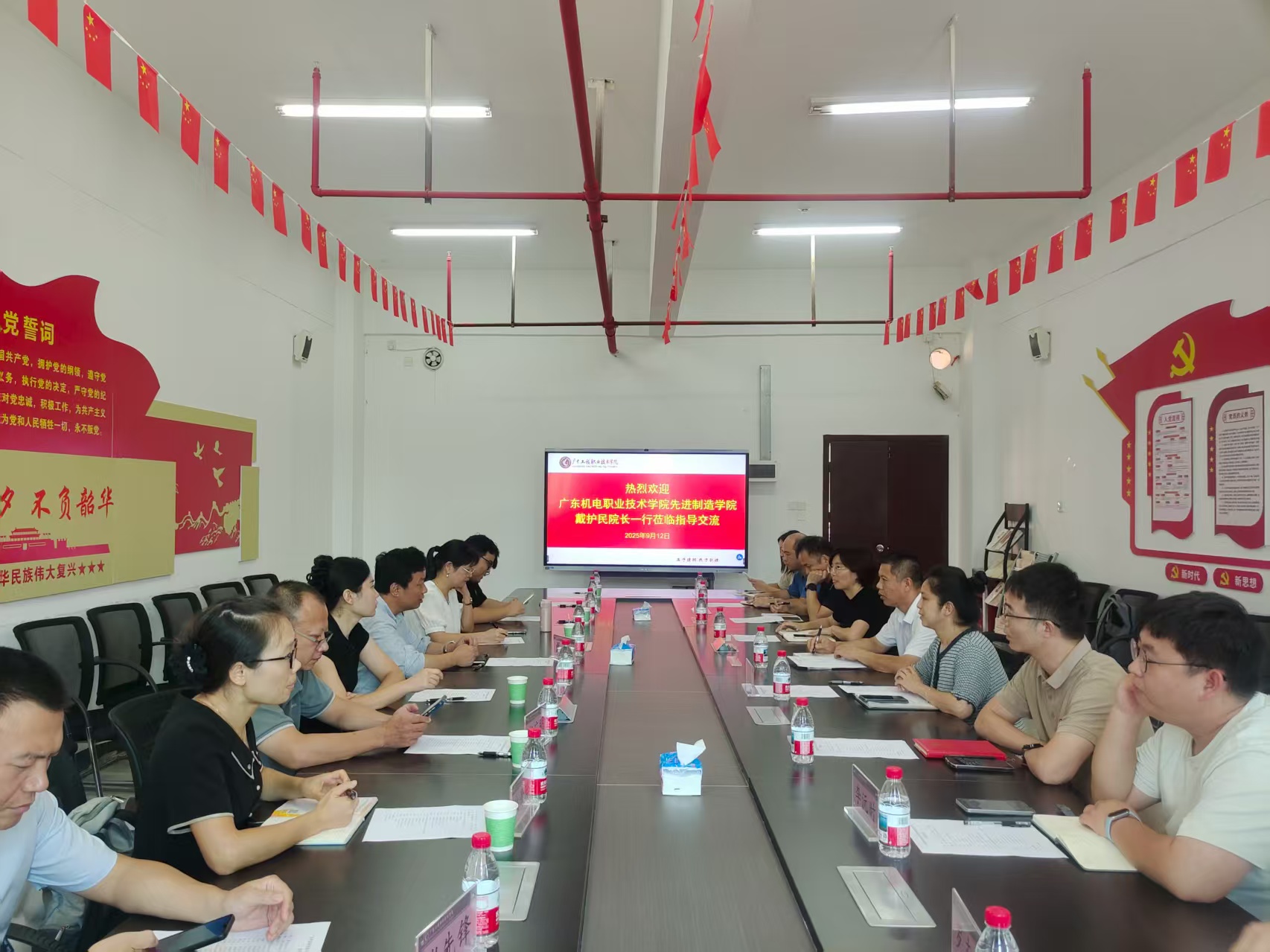 座谈会上,周奇舟书记对戴护民院长一行的到来表示欢迎,并介绍了先进制造学院(电梯工程学院)的专业布局、师资力量及产教融合特色。戴护民院长则分享了广东机电职业技术学院先进制造学院在课程体系改革、实训基地建设方面的经验。随后,双方聚焦专业建设与就业工作展开交流,重点围绕模具设计与制造、数控技术等专业的课程优化、校企协同育人模式展开热烈讨论,郑洁副书记分享了就业工作经验。