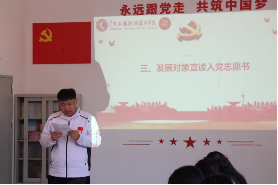 随后,发展对象古梓辰同志上台发言,郑重表达了自己加入党组织的强烈意愿和为人民事业贡献力量的坚定决心。入党介绍人详细介绍了发展对象古梓辰同志在培养期内的表现并发表评价意见。经与会具有表决权的正式党员无记名投票方式表决,一致同意接收古梓辰同志为中共预备党员。