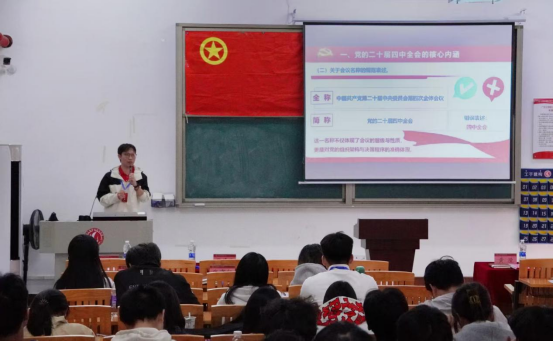 为深化理论武装、强化思想引领,大会特别设置专题学习环节。学院兼职团委副书记张嘉伟围绕党的二十届四中全会精神作专题辅导,引导广大青年深刻领会核心要义,自觉将学习成果转化为推动实践的强大动力。