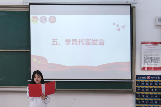 仪式上,团委指导老师杨贵茜宣读青马班考勤制度,明确纪律要求,为培训顺利开展提供坚实保障。接着,学员代表钟新盈在发言中郑重承诺,将珍惜学习机会,以勤学深思、严于律己、主动担当的态度,认真完成各项培训任务,切实履行青马学员的职责与使命。