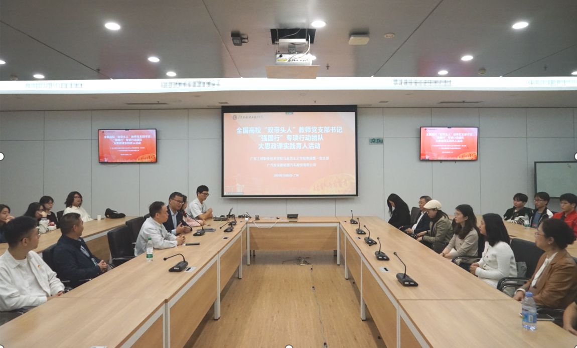 为深入学习贯彻党的二十届四中全会精神和习近平总书记视察广东、出席第十五届全国运动会开幕式重要讲话重要指示精神,发挥党建对“大思政课”铸魂育人的引领作用,全国高校“双带头人”教师党支部书记“强国行”专项行动团队——马克思主义学院教师第一党支部组织开展大思政课实践育人活动。12月5日上午,马克思主义学院教师第一党支部全体党员教师和学生代表一行50人走进广汽埃安新能源汽车股份有限公司,实地探寻新质生产力实践路径,以“校企联动”模式推动思政教育与产业发展深度融合,共育时代新人。