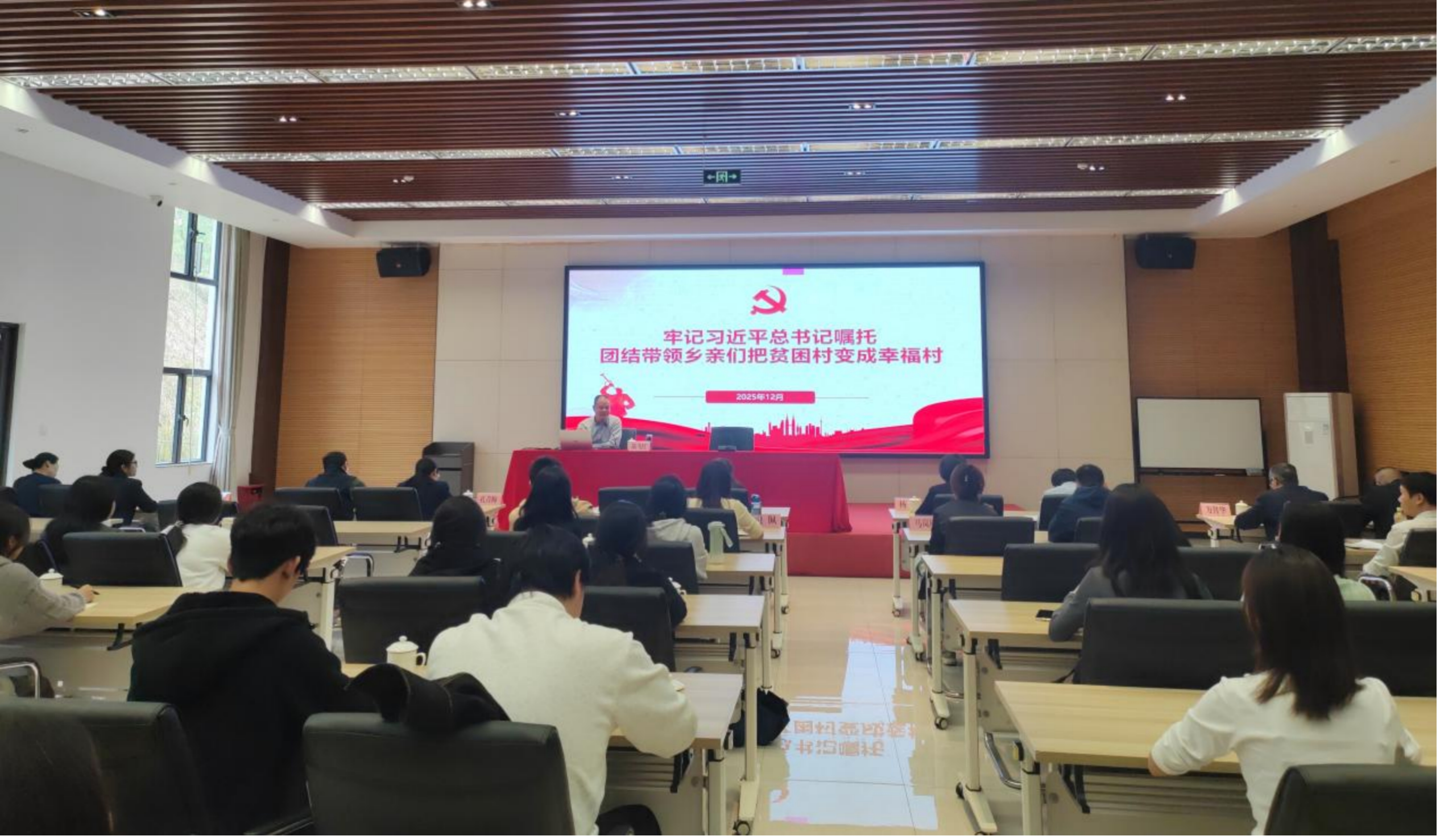 在乡村振兴学院讲堂,师生们聆听了连樟村党总支书记、村委会主任陆飞红所作的“牢记习近平总书记嘱托 团结带领乡亲们把贫困村变成幸福村”专题报告。陆书记深情回顾了总书记来到连樟村考察时的情景,生动讲述了村党组织带领村民脱贫致富、建设美好家园的奋斗历程,言语朴实、情感真挚,让在场师生深受触动。报告结束后,大家围绕党建引领乡村振兴、教育赋能乡村建设等内容展开现场交流互动,分享感悟、凝聚共识。