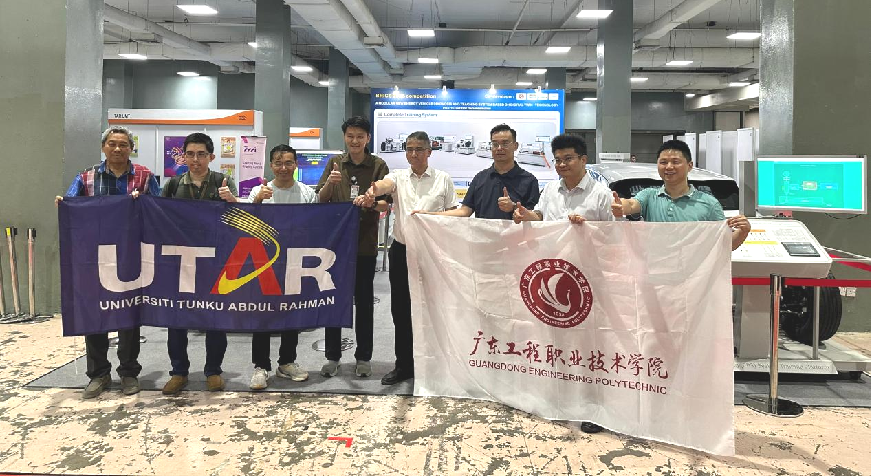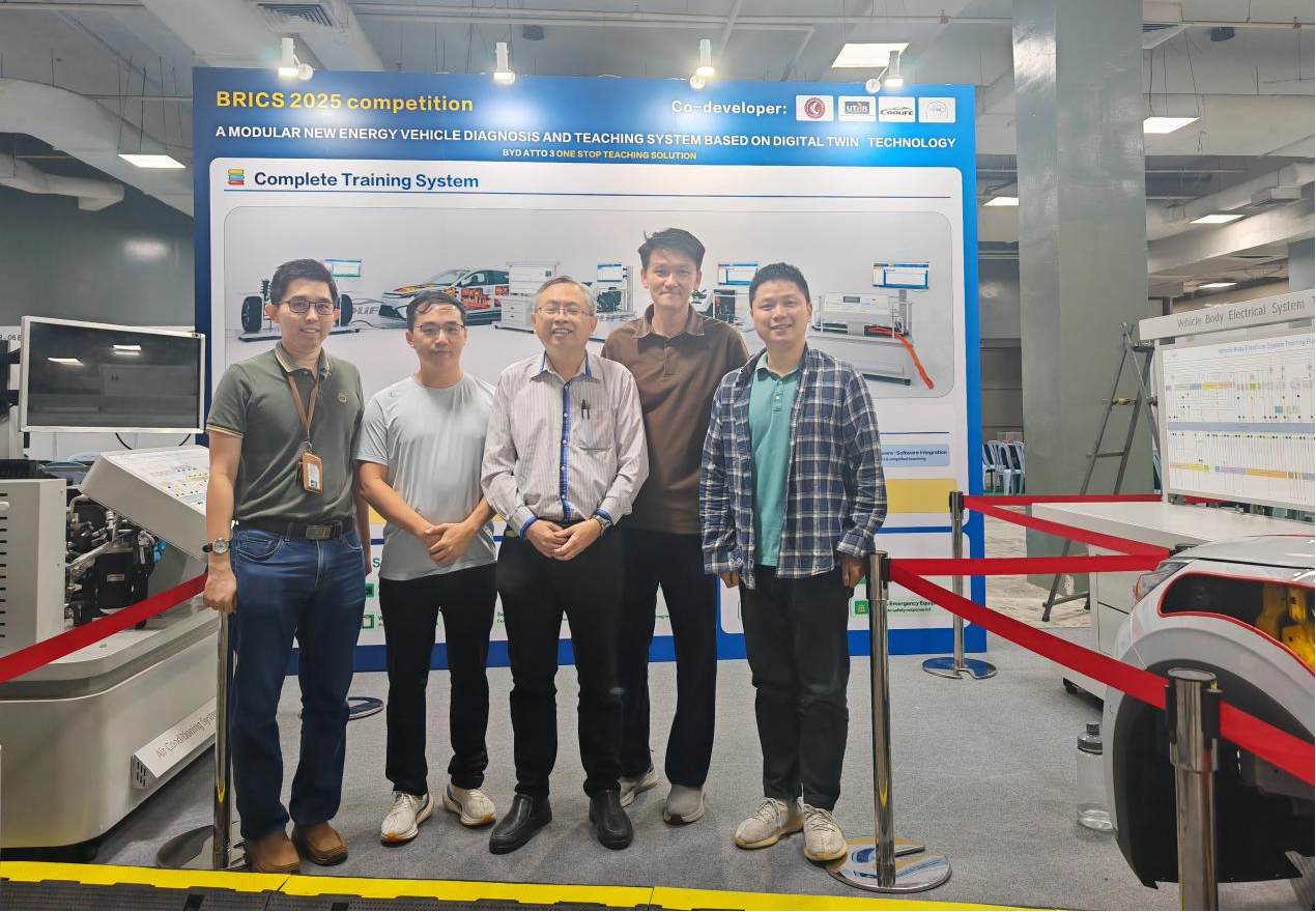 近日,从马来西亚吉隆坡传来振奋人心的捷报,在11月14日至16日举办的“2025一带一路暨金砖国家技能发展与技术创新大赛东盟国际赛”上,我校汽车工程学院李维兴师生团队携手马来西亚拉曼大学李英隆教授,联合中国Coolife Co.,Ltd及马来西亚Maluri Equipment(M) Sdn Bhd公司组成的跨国产学研团队,凭借《基于数字孪生技术的模块化新能源汽车诊断与教学系统》项目,成功摘得大赛最高荣誉——金奖。