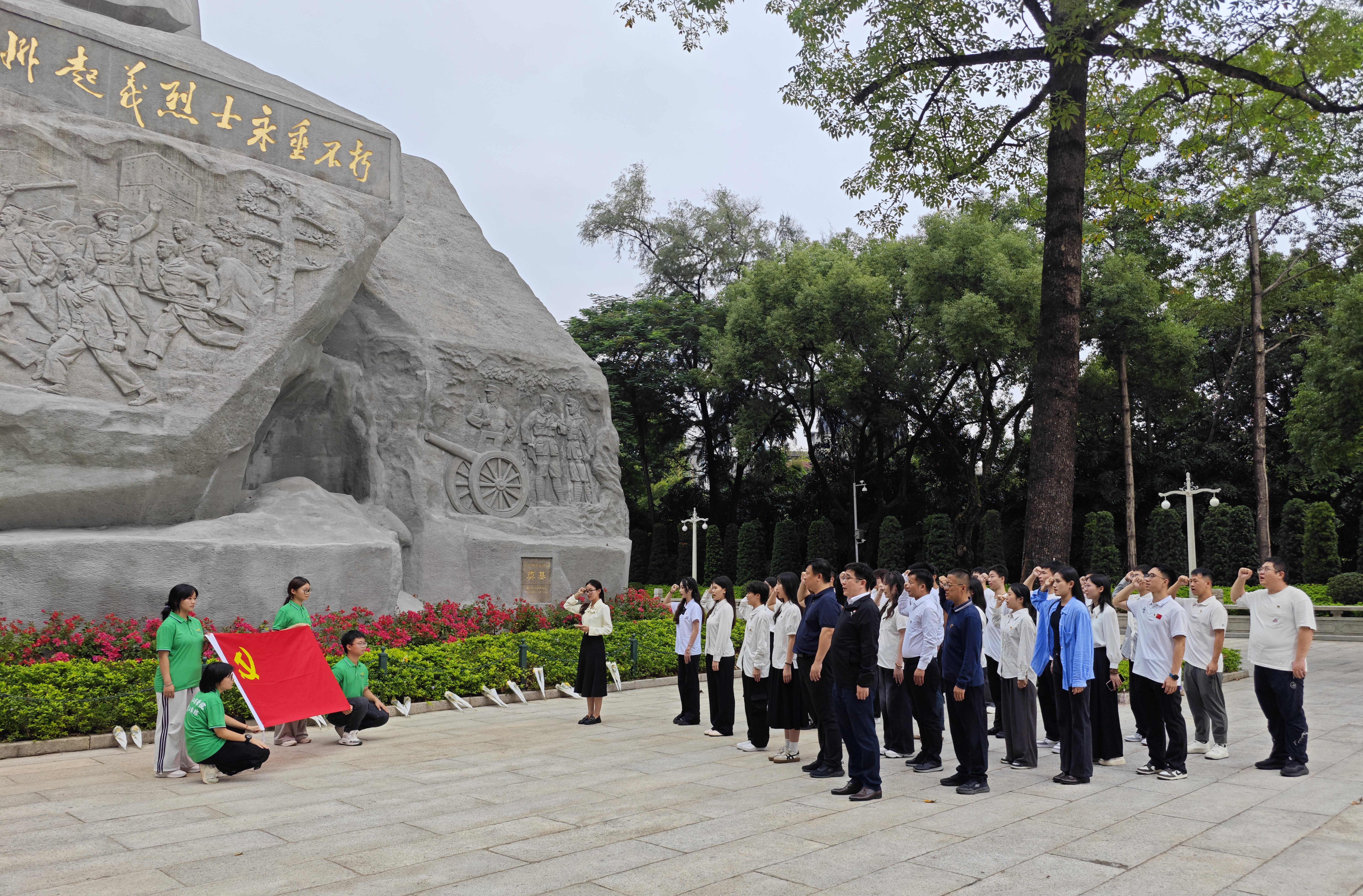 随后,大家前往广州起义烈士陵园。走进庄严肃穆的陵园,高耸的广州起义纪念碑巍然矗立,“广州起义烈士永垂不朽”的鎏金大字熠熠生辉。全体人员怀着崇敬的心情向革命烈士集体默哀三分钟,深切缅怀在广州起义中英勇牺牲的革命先烈。在纪念碑前,党支部书记曾莹莹带领全体党员重温入党誓词,铿锵有力的誓言回荡在陵园上空,让每一位党员再次感受到入党时的庄严承诺和坚定决心。
