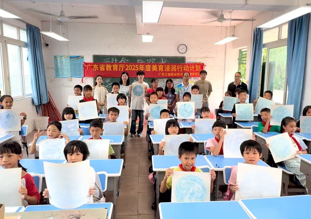在国家美育政策与广东省“美育浸润行动计划”的指引下,广东工程职业技术学院美育教师团队于2025年9月18日至19日深入清远市浸潭镇,为浸潭镇中心小学、红星希望小学、浸潭镇大湾岗小学、浸潭镇第二初级中学等4所中小学送去精准化、沉浸式的美育帮扶,让艺术之光点亮乡村校园,让文化之根扎进孩子心田。