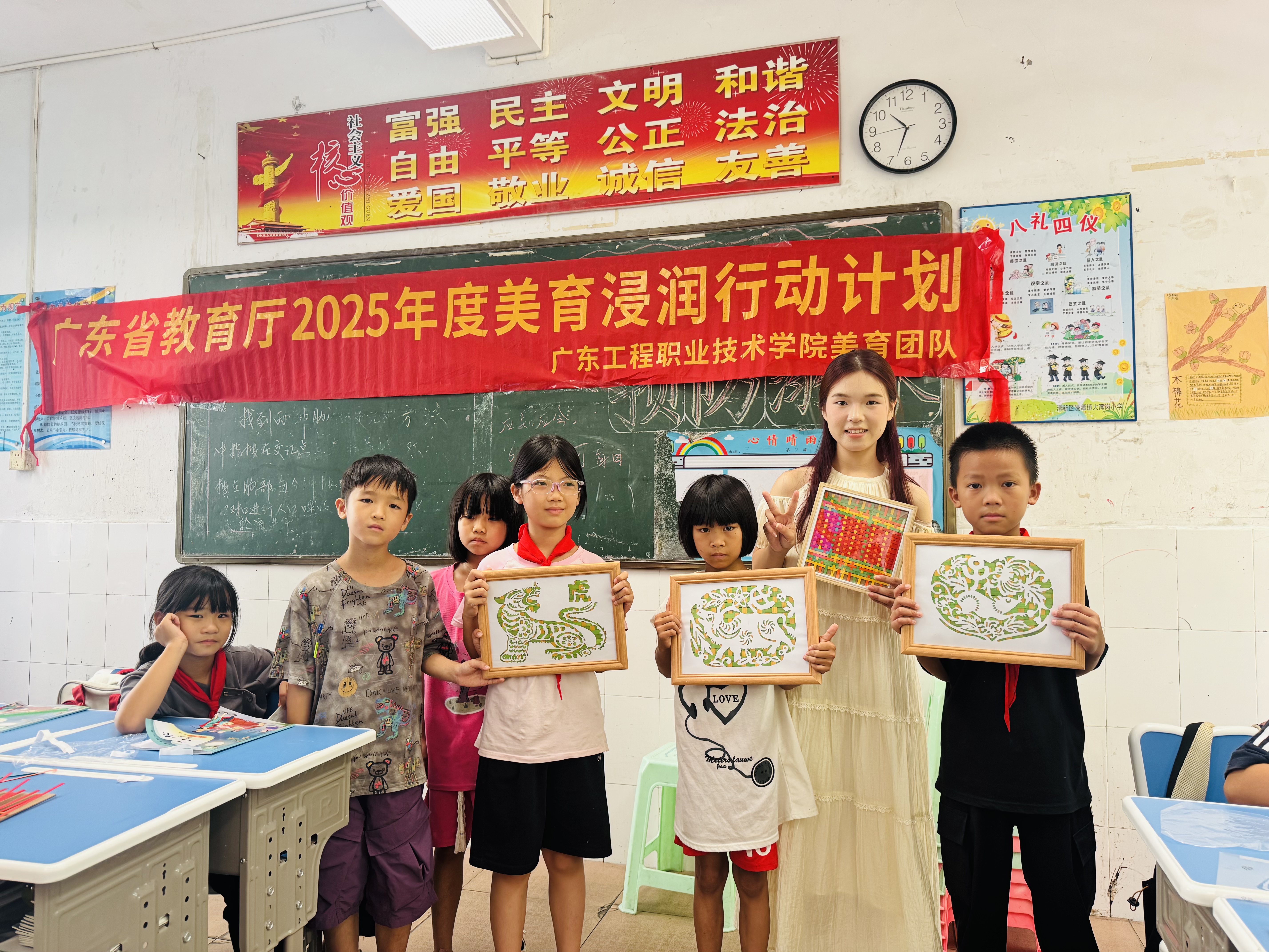 从浸潭镇中心小学的多元课程到红星希望小学的文化传承,从初中的节奏启蒙到各校的师资赋能,广东工程职业技术学院美育教师团队的美育浸润精准对接每所学校的需求。课堂上的专注眼神、作品完成后的灿烂笑容、校领导期待合作的恳切话语,都印证着美育浸润已在浸潭镇的乡村校园里落地生根。未来,随着“高校+乡村学校”协同机制的深化,这些学校的美育之路必将越走越宽,让每个孩子都能在艺术滋养中成长。(撰稿:黄洋 温洁芸 核对:郭希 审核:吴文丰)
