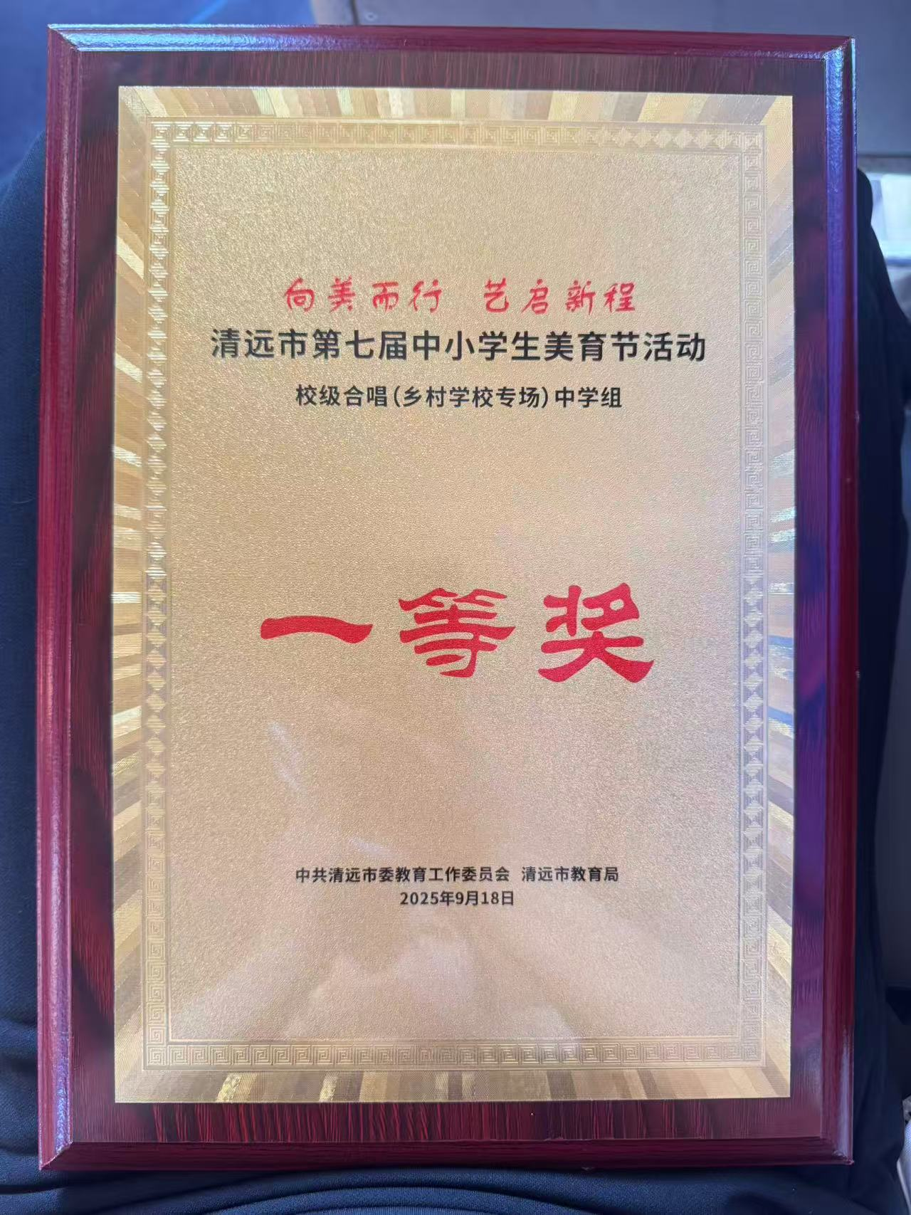 近日,清远市第七届中小学生美育节校级合唱(乡村学校专场)中学组比赛与班级情境合唱双双传来捷报,清远市浸潭镇第一中学9年级四班获得第二名,合唱团凭借出色表现斩获第一名。这是该校及浸潭镇首次在市级比赛中有所斩获并摘得桂冠,成为广东省美育浸润行动计划落地见效的生动体现。