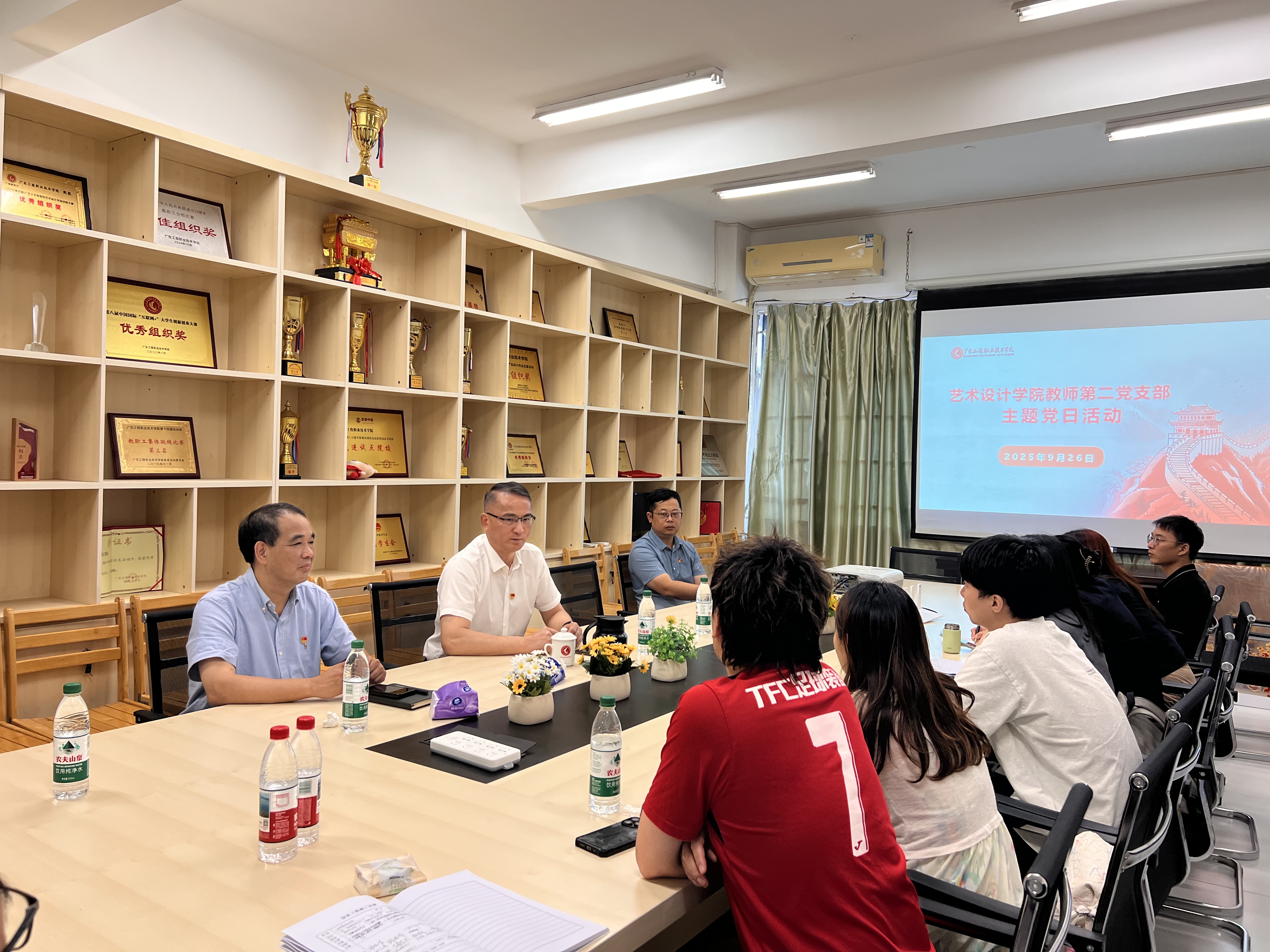 为深入贯彻落实立德树人根本任务,切实加强教师队伍思想政治素质和师德师风建设,9月26日,艺术设计学院教师第二党支部在5号实训楼602开展“弘扬高尚师德,争做‘四有’好老师”主题党日活动,学校党委书记叶忠明、学院党委书记吴文丰及支部全体党员参会。