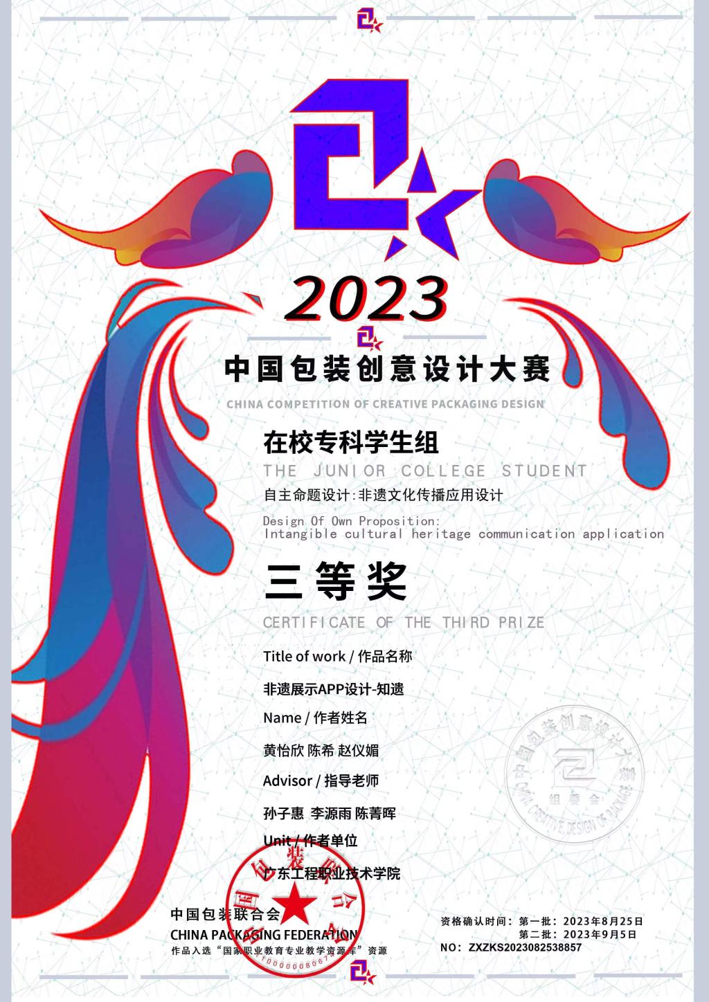 2023年 2023广东省职业院校技能大赛教学能力比赛省级三等奖、2023教育部职业院校艺术设计类专业教学指导委员会教学能力比赛二等奖、年终考核优秀