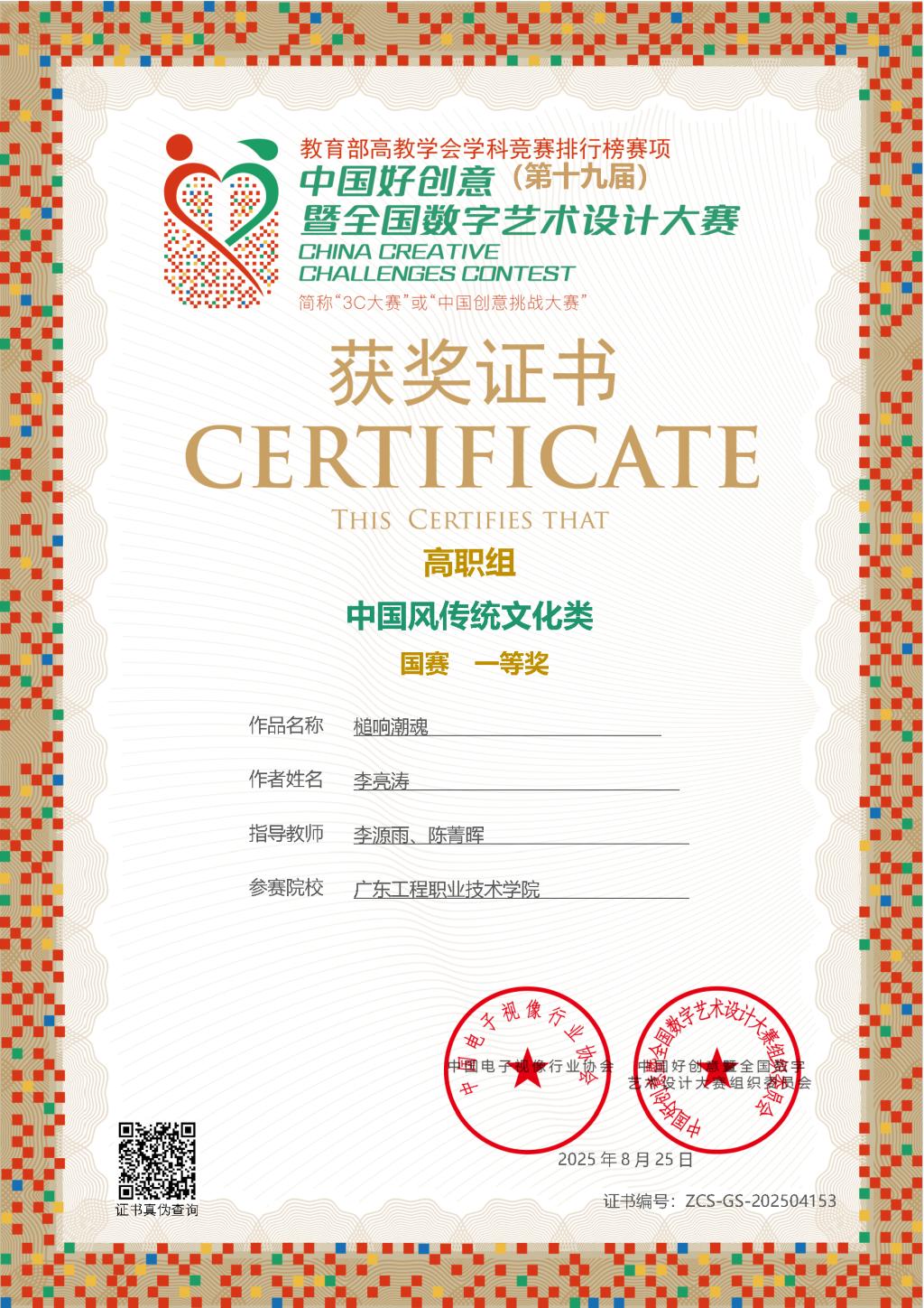 2025 指导学生参加2025第十九届中国好创意暨全国数字艺术设计大赛获全国总决赛一等奖1项,广东赛区三等奖1项