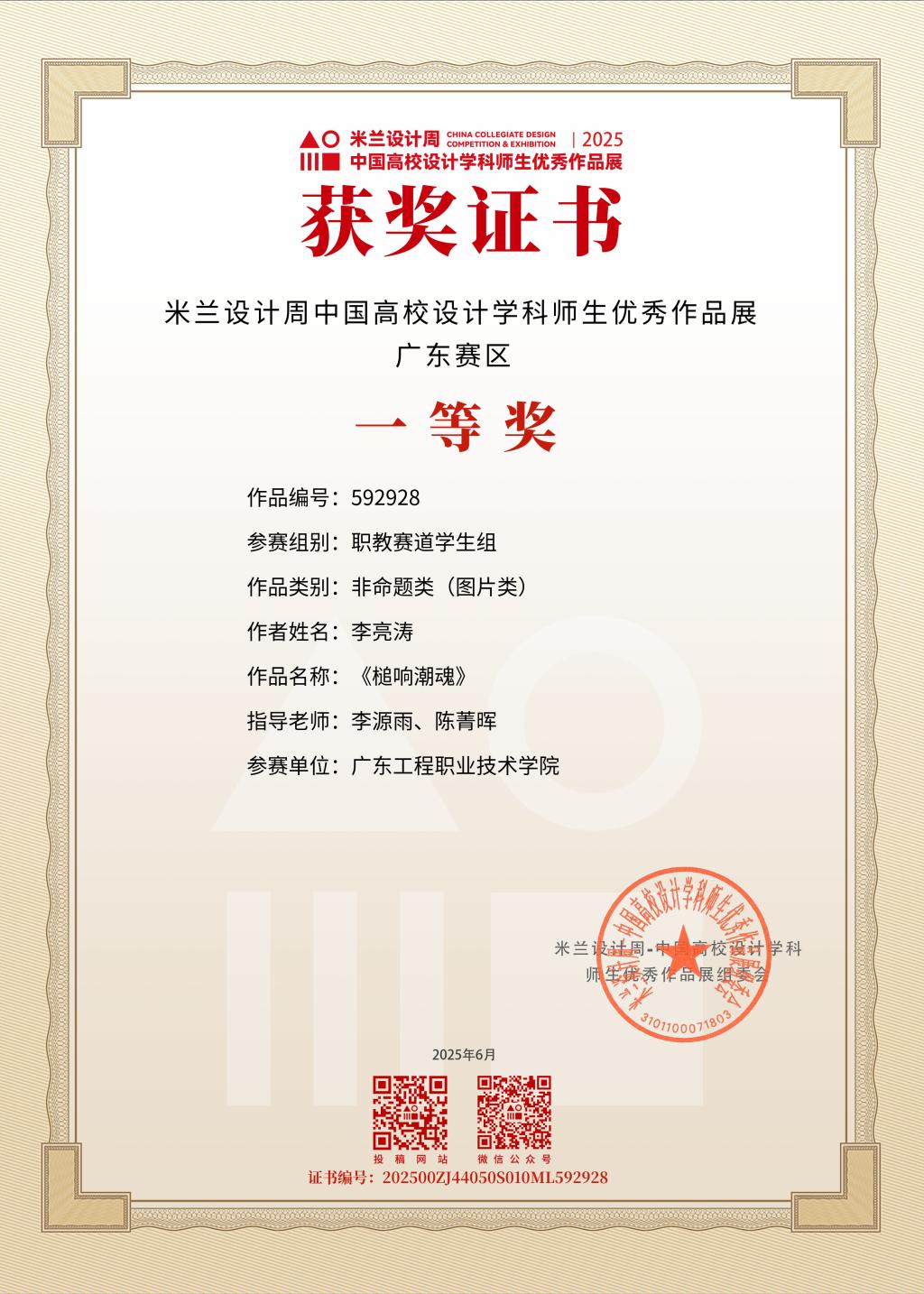 2025 指导学生参加2025米兰设计周·中国高校设计学科师生优秀作品展获广东赛区一等奖1项,三等奖3项