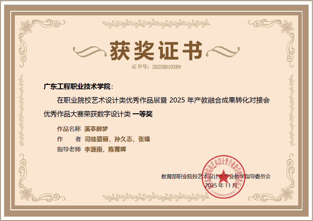 2025 指导学生参加全国职业院校艺术设计类优秀作品展暨产教融合成果转化对接会优秀作品大赛荣获(数字设计类)一等奖