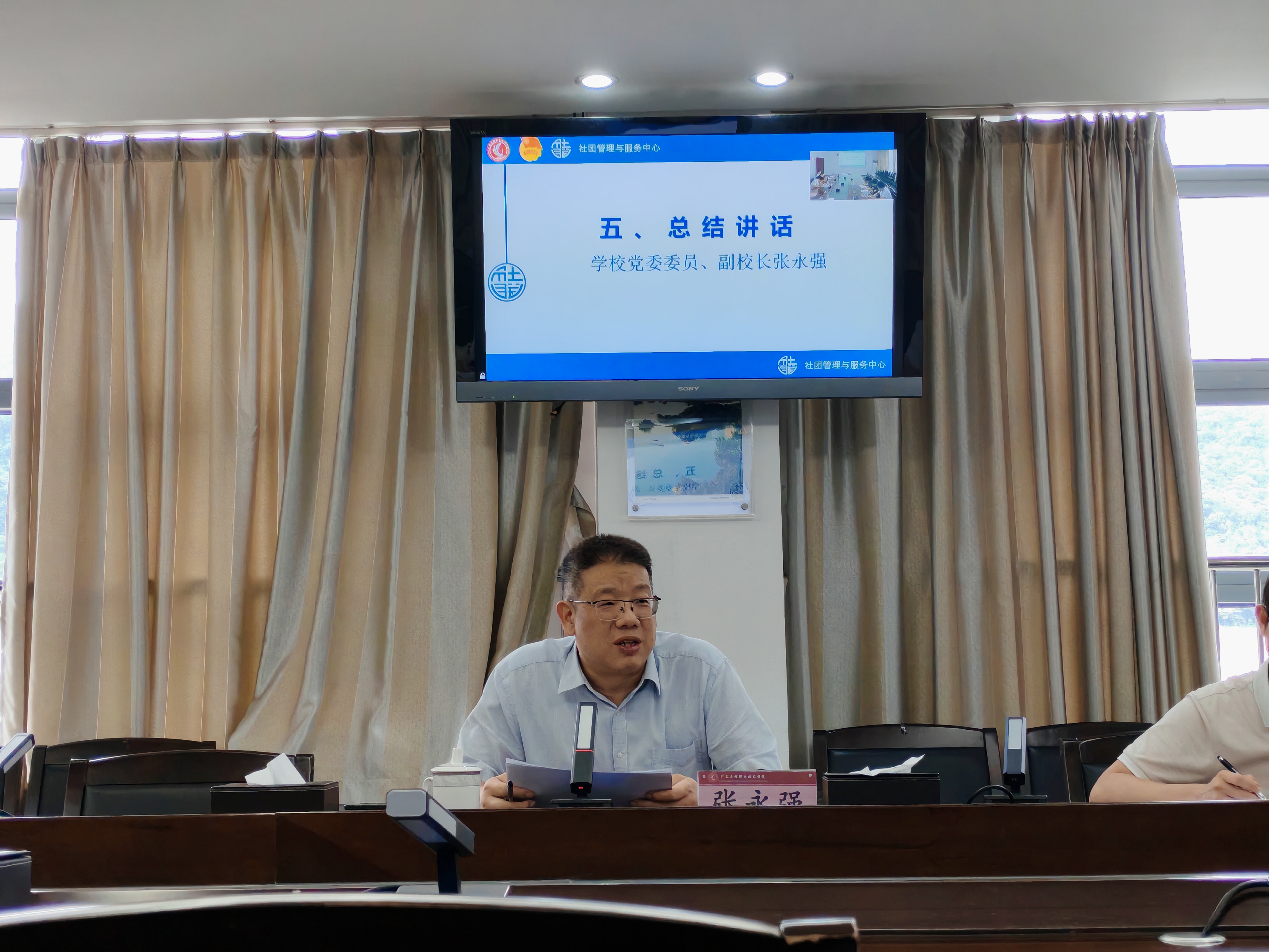 会议最后,党委委员、副校长张永强进行了总结讲话。他指出,学生社团是高校文化建设的重要组成部分,也是能锻炼学生发展的途径之一,在新形势下做好社团规范管理工作十分重要。张校对社团管理提出了四点要求:一要强化政治站位,压实指导老师责任。要把好方向,坚持立德树人的目标,注重学生德智体美劳的全面发展;二要充分发挥社团作用,积极活跃校园文化。特别是要发挥好社团承接学院技能竞赛、促进学生学术和技能发展等方面的功能;三是要加强监督监管,确保社团健康发展。要不断优化完善相关的社团管理规章制度,持续推进规范管理。社团指导老师每年要做好社团活动台账及指导工作大纲,团委要加强检查,完善激励鼓励和竞争机制,以“十佳社团”评选、末位淘汰等机制激发社团活力。