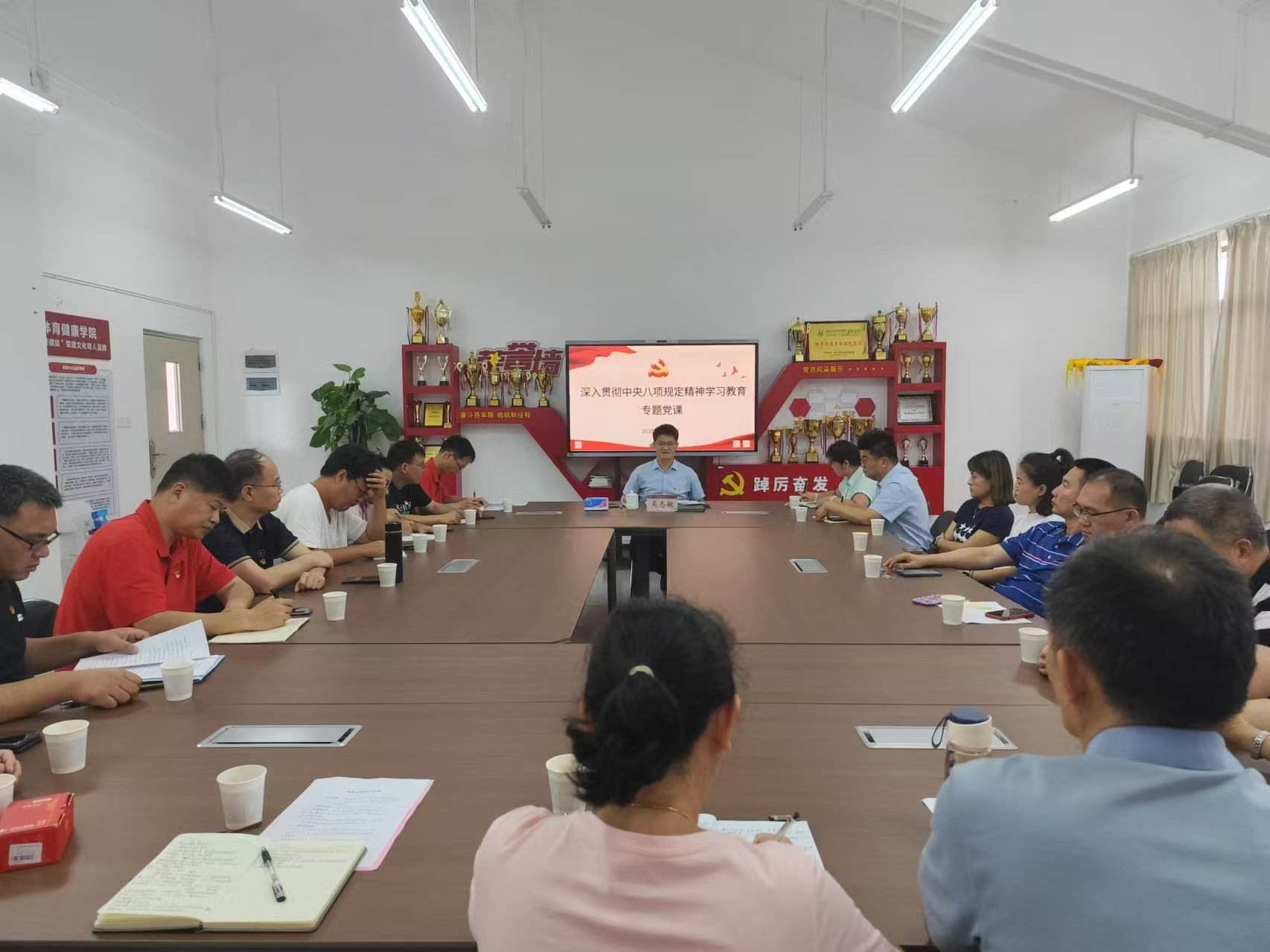 2025年6月11日,广东工程职业技术学院党委委员、副校长吴志敏在省职教城校区Q4-618会议室,为科学技术部党支部、教学质量监测中心党支部及体育健康学院教师第一党支部的党员教师讲授了一堂立意深远、直面问题的深入贯彻中央八项规定精神学习教育专题党课。本次党课以《以作风建设“硬约束”撬动学校发展“软实力”》为主题,围绕学习贯彻中央八项规定及其实施细则精神,深刻剖析了职业教育发展困境,为学校高质量发展指明了实践路径。会议由科学技术部党支部书记莫康信主持。