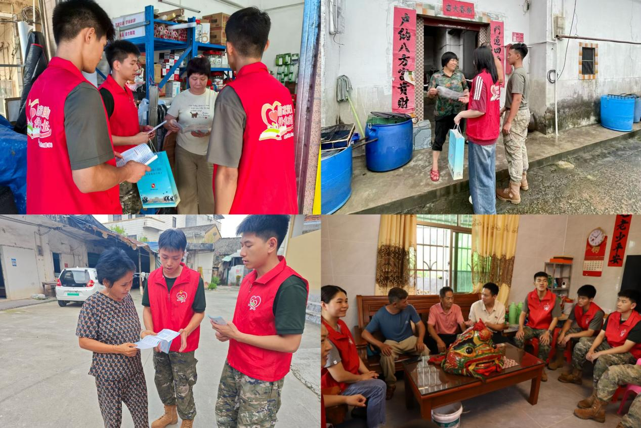 为全面贯彻落实党的二十大“完善覆盖全学段学生资助体系”的部署要求,推动国家学生资助及退役军人上学资助政策精准落地乡村,广东工程职业技术学院组建了一支以在校退役大学生士兵为主力的“戎光筑梦”退役军人资助政策宣传专项团队。7月10日至16日,在学校学生工作部(招生与就业指导中心)张文婷、艺术设计学院杨容两位老师的带领下,以“退伍不褪色,乡土建新功”的誓言,开赴惠州市惠阳区横沥镇,化身暖心政策“宣传队”和“播种机”,将国家针对贫困家庭学子与退役军人的各项资助关怀,化作一场场浸润心田的“政策及时雨”,精准送达田间地头、农家小院和百姓心坎。