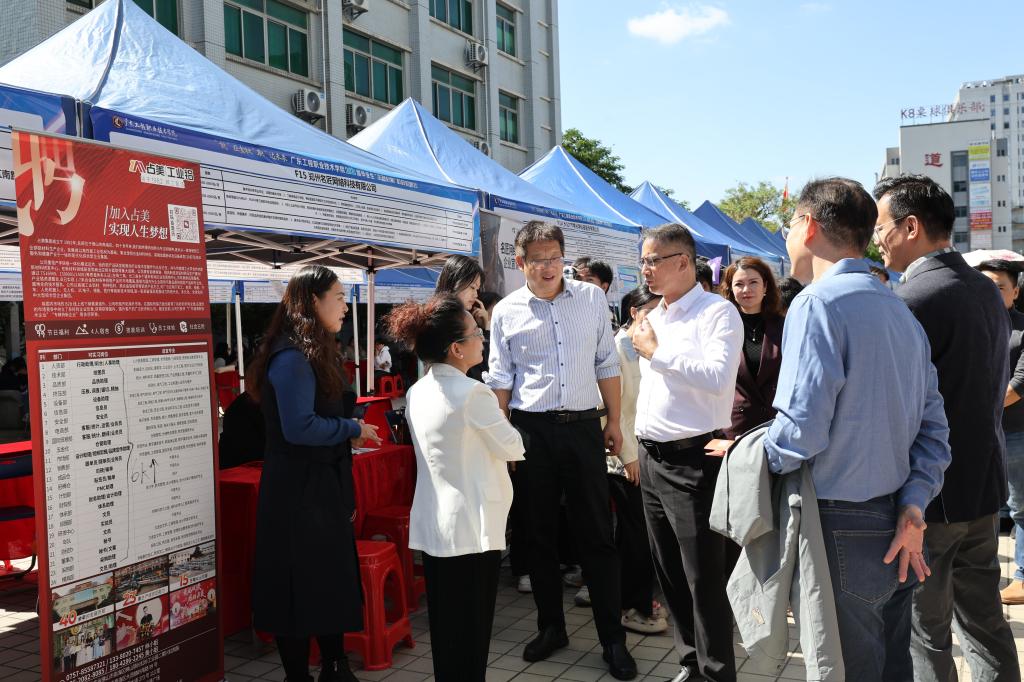 为深入贯彻落实教育部关于开展2026届全国高校毕业生“金秋启航”校园招聘月活动的部署,促进毕业生更充分、更高质量就业,2025年11月4日至5日,我校在清远校区和广州校区同步举办2026届毕业生“金秋启航”校园招聘会。近300家优质企业进入校园,为2026届毕业生及2025届未就业学子带来了一场诚意满满的“就业盛宴”。学校党委书记叶忠明,党委委员、副校长张永强,各二级学院党委书记、副书记、毕业班辅导员与2026届毕业生共同参加了此次活动。