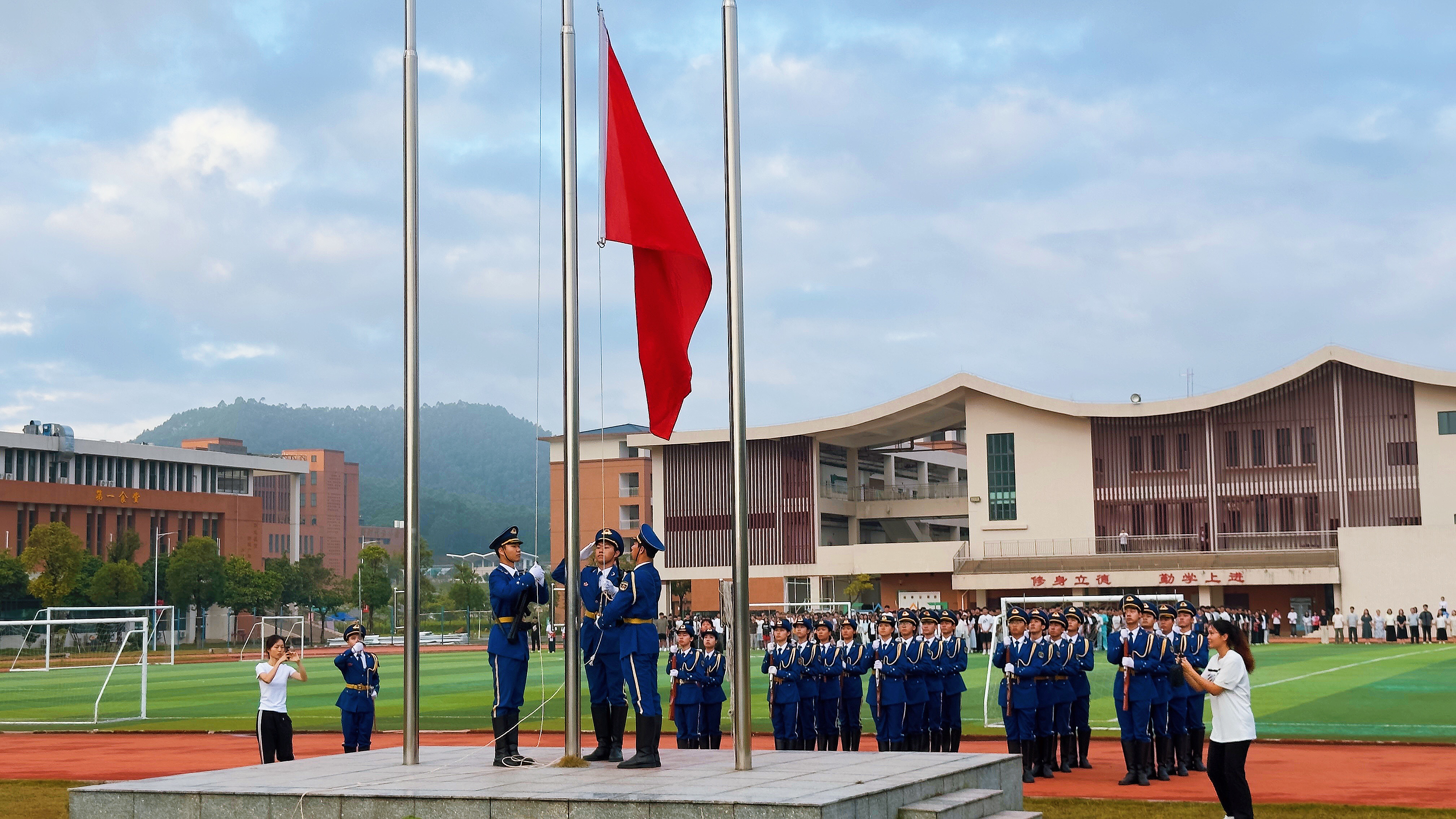 晨光初曦,清风拂面。上午7时整,升旗仪式在庄严的氛围中正式开始。英姿飒爽的国旗护卫队迈着铿锵有力、整齐划一的步伐,护卫着五星红旗走向升旗台。伴随着激昂雄壮的《义勇军进行曲》响起,鲜艳的五星红旗冉冉升起,迎风飘扬。全体师生肃立行注目礼,齐声高唱国歌,真挚的爱国热情与崇高的民族自豪感在每个人心中激荡。