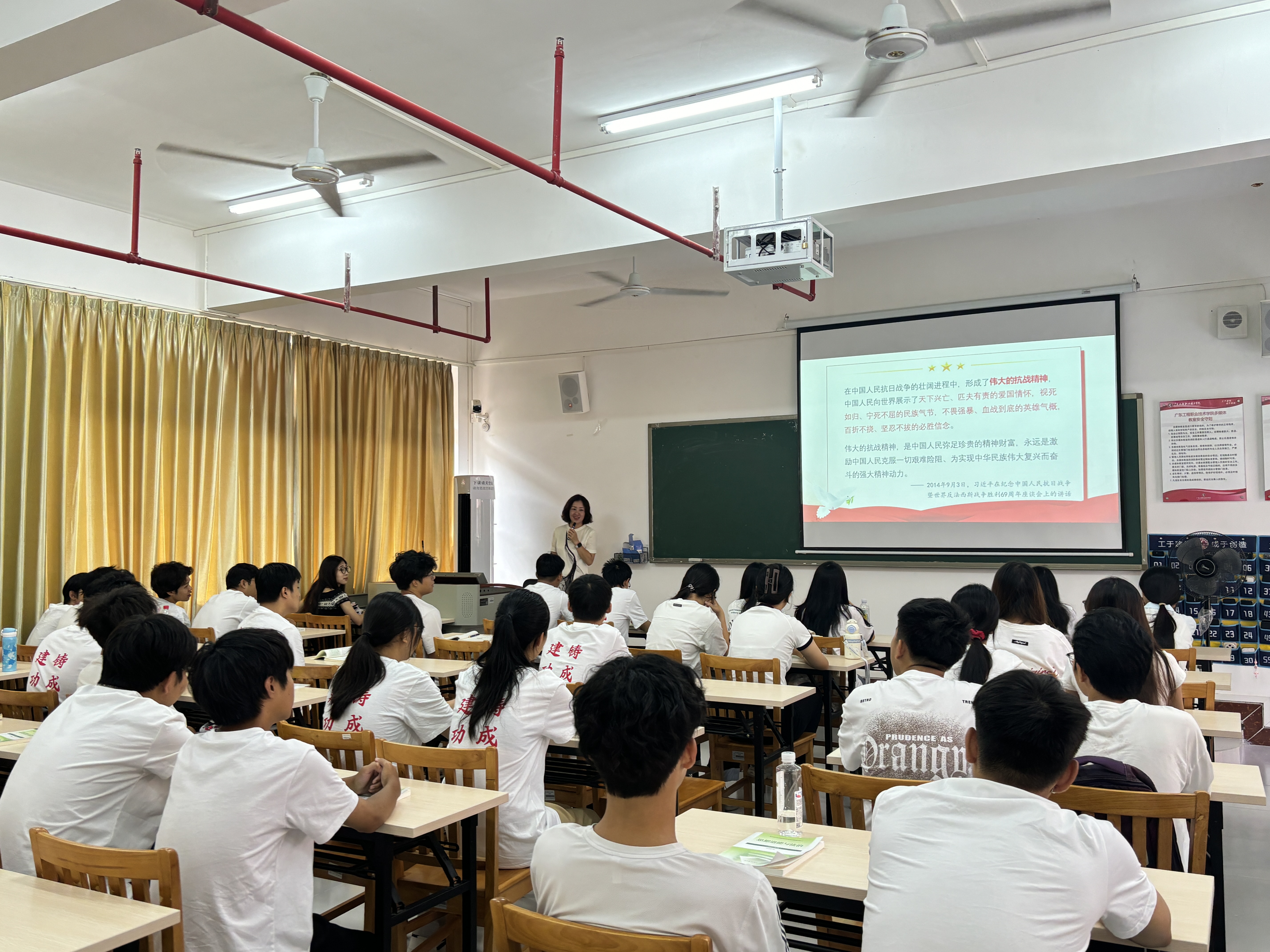 钟婷以“纪念抗战胜利 坚定民族信念”为题,紧扣抗日战争胜利80周年的重要历史节点,系统回顾了从局部抗战到全民族抗战的壮阔历程,深刻阐释了中国共产党在抗战中发挥的中流砥柱作用。她通过对比分析抗战时期的中日国力、援引中国战场牵制日军主力的关键史实,生动解读了以爱国主义为核心的伟大抗战精神,即“天下兴亡、匹夫有责的爱国情怀,视死如归、宁死不屈的民族气节,不畏强暴、血战到底的英雄气概,百折不挠、坚忍不拔的必胜信念”。她勉励同学们,要从历史中汲取前行力量,将红色基因融入血脉,以卓越的专业技能和坚定的理想信念,努力成长为担当民族复兴大任的时代新人。