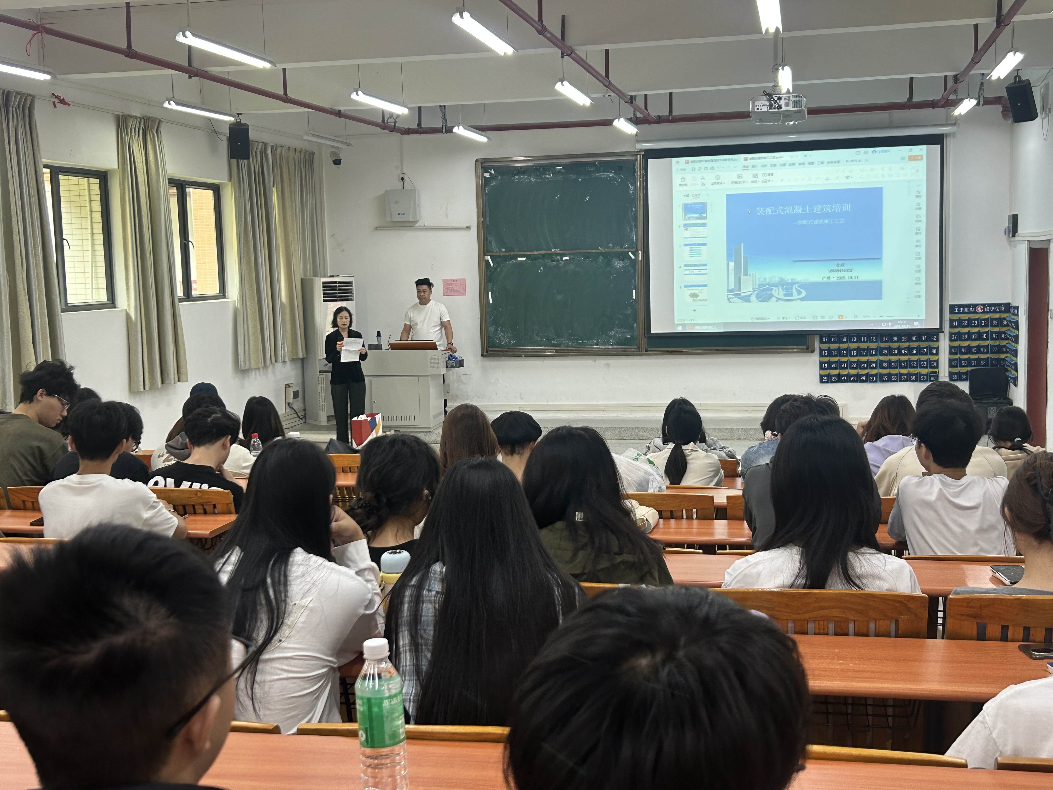 为深入贯彻落实国家建筑工业化、智能化发展战略,推动智能建造技术专业高质量发展,2025年10月21日,建筑工程学院在省职教城校区成功举办产业导师大讲堂系列讲座第一讲与第二讲。两场讲座紧密围绕行业前沿,分别以“装配式混凝土建筑施工”和“装配式建筑智能建造技术创新及应用研究”为主题,特邀广州瑾和建筑劳务有限公司总经理、广东省技术能手、羊城工匠、装配式建筑高级专家杜超担任主讲嘉宾。学院领导、智能建造技术专业教师及学生共同参与了此次学术盛宴。