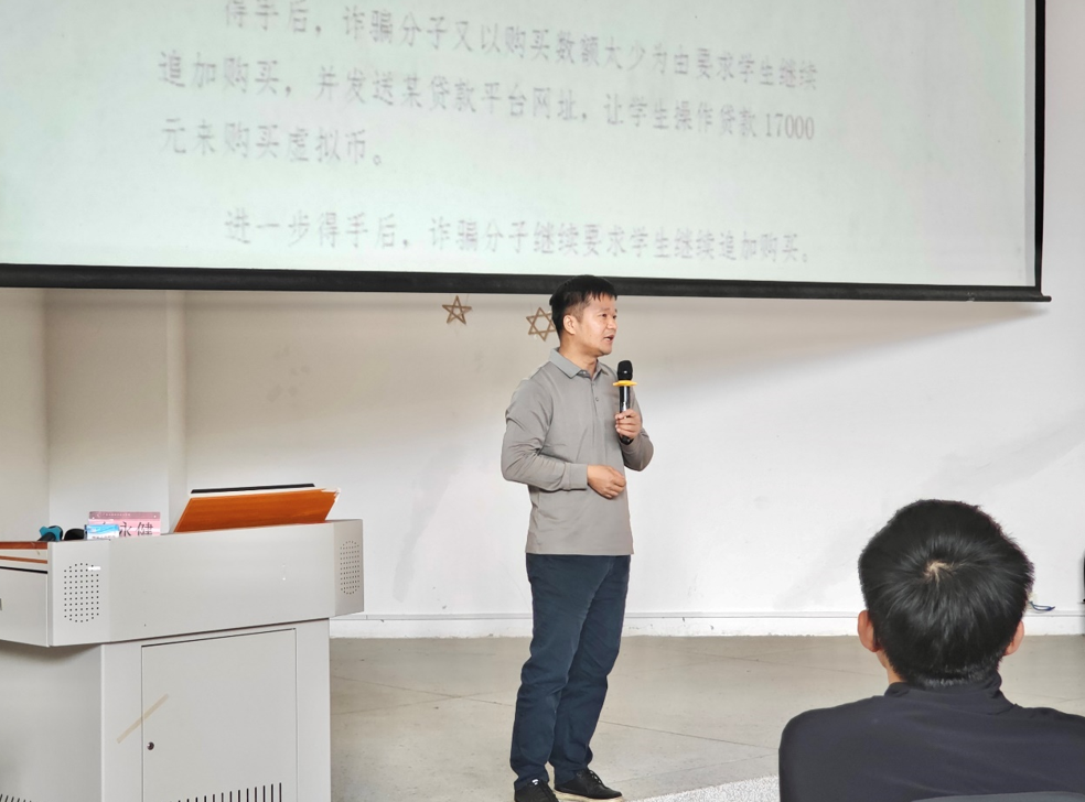 在肖贵灯副书记主持的主班会现场,他以“案例警示+知识科普+意识引导”的方式,围绕学生日常安全的核心领域展开深入讲解。针对交通安全,他结合近期发生的学生共享电动车超载、未佩戴安全帽且边玩手机边行驶引发车祸的惨痛案例,直观剖析交通违规行为的危害,强调“骑行必戴盔、不超载、不分心”的基本准则;针对溺水安全,他以校外学生露营戏水溺水身亡的事件为警示,明确要求学生远离水塘、水库、深水湾等危险水域,杜绝结伴野泳;针对反诈防骗,他结合学院近期典型案例——学生因网课退费被骗4000元等,带领学生逐条学习“十个凡是”反诈口诀,让学生深刻认识到诈骗陷阱的隐蔽性。