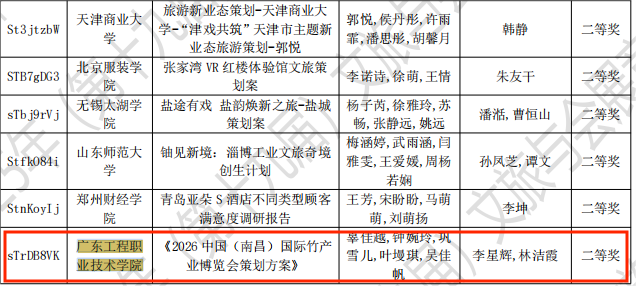 我校在本届赛事中的获奖数量与质量均位居全国高职院校前列,充分彰显了会展策划与管理专业的办学实力与人才培养水平。文化旅游学院会展策划与管理专业长期坚持“以赛促教、以赛促学、以赛促创”的教学理念,高度重视学生专业实践能力与创新精神的培养。学院积极对接行业前沿,不断深化产教融合,与广东省多家行业领先企业建立深度合作,为学生搭建了高质量的实训与实践平台。