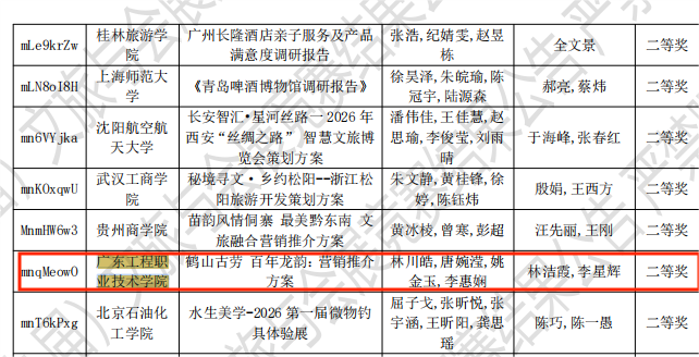 近日,2026年(新加坡)国际商务会展策划大赛中国地区选拔赛暨第十九届全国高校商业精英挑战赛文旅与会展创新创业实践竞赛全国总决赛圆满落幕。我校文化旅游学院会展策划与管理专业选派的三支参赛团队表现优异,共荣获全国二等奖两项、三等奖一项,充分展现了我校在会展教育及人才培养方面的扎实基础和显著成效。