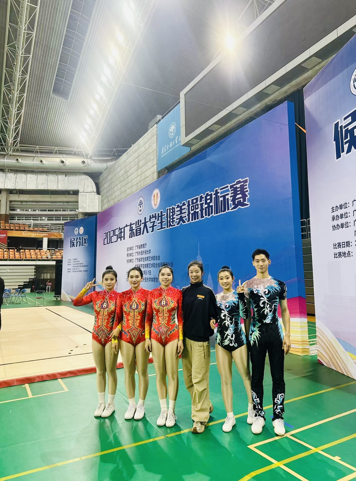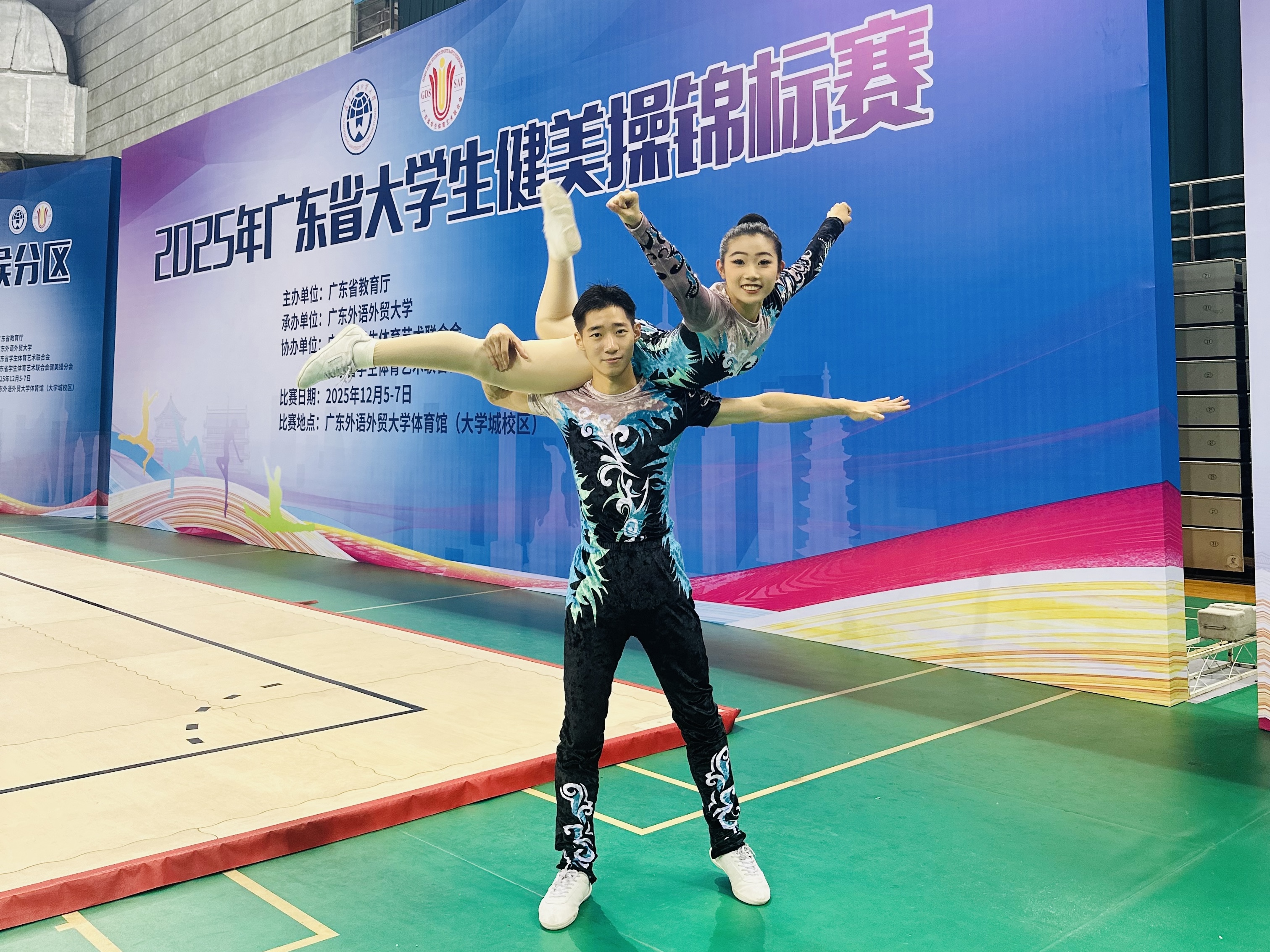 12月5日至7日,由广东省教育厅指导、广东省学生体育艺术联合会主办的2025年广东省大学生健美操锦标赛,在广东外语外贸大学大学城校区体育馆顺利举行,共有省内高校52支代表队754名选手参加角逐。此次赛事,我校派出5名学子出征,由周琳院长带队,张菊香、郭晓静两位老师担任指导教练。赛场上,队员们身着统一赛服,以饱满的热情、昂扬的姿态投入每一项比拼,我校学子不负众望,在仅有5名队员参加比赛的情况下一举拿下丙组团体总分第五名的成绩,还获得两个项目第三名及三个项目第四名的成绩,用实力在赛场上绽放青春光彩!