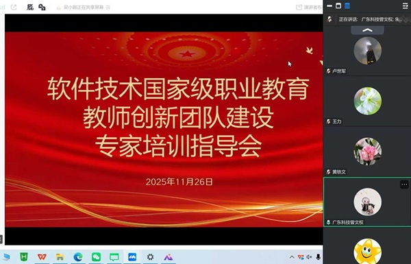 为精准对接国家级职业教育教师教学创新团队建设质量考核要求,破解建设难题,提升团队建设水平,2025 年 11 月 26 日,软件技术国家级职业教育教师创新团队建设专家培训指导会顺利召开。会议特别邀请到第一批国家级职业教育教学创新团队带头人、广东科学技术职业学院副校长曾文权教授担任主讲嘉宾,为团队建设 “把脉问诊”“传经送宝”。会议由学校创新团队带头人、教务部部长朱珍教授主持。