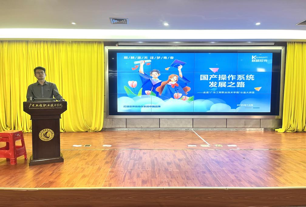 本次讲座作为“我为群众办实事”和“AI青年行”公益行动的系列活动之一,不仅为广东工程职业技术学院学子带来了一堂生动的专业启蒙与前沿导学课,加深了他们对信创国家战略、国产操作系统技术现状与产业趋势的理解,更激发了同学们投身国产基础软件领域学习与研究的兴趣和使命感。智能工程学院将持续推进与麒麟软件等信创龙头企业的深度合作,探索多元化产教融合路径,优化人才培养方案,为服务区域经济社会发展、培养更多高素质技术技能型信创人才而不懈努力。