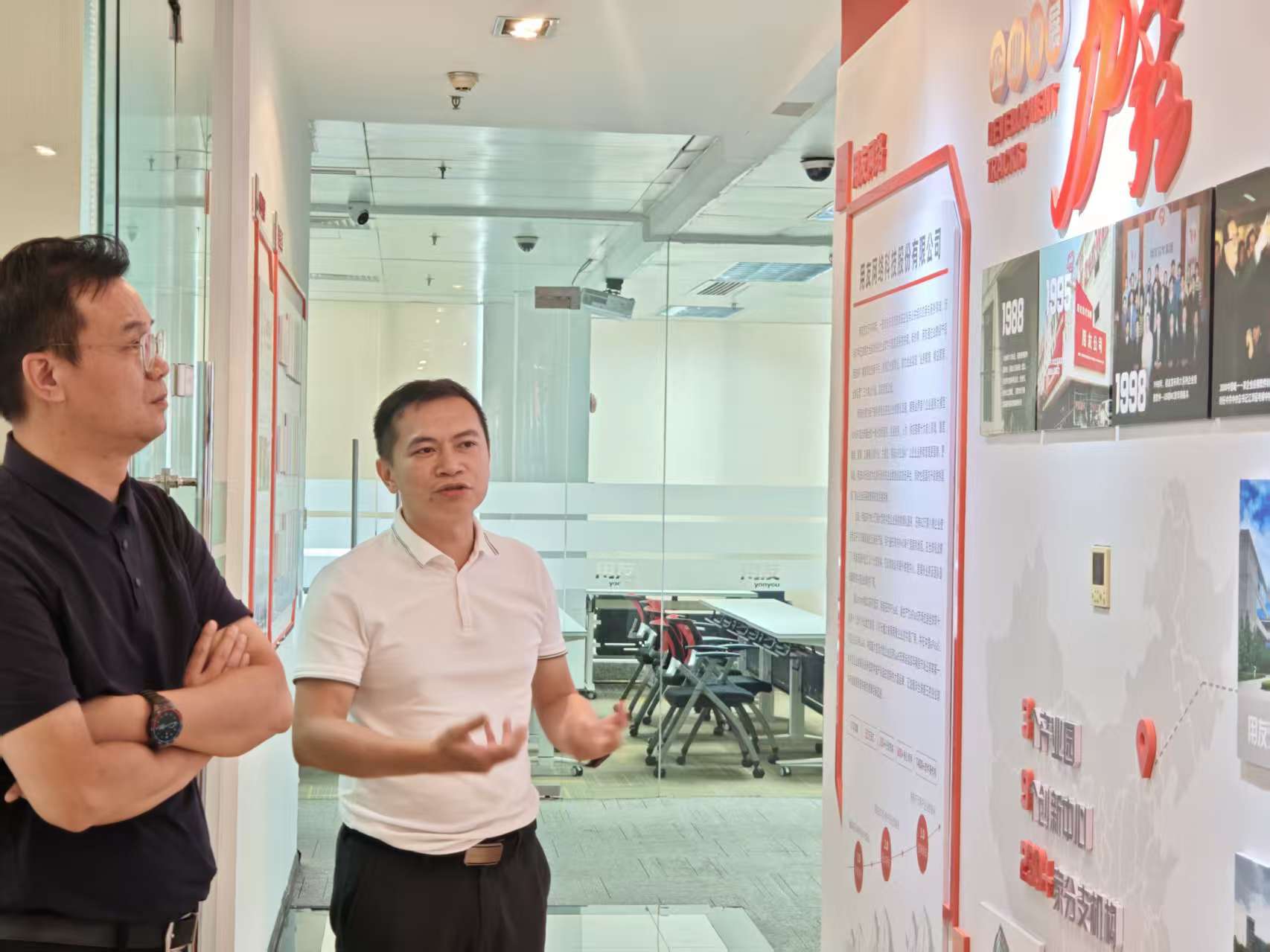 麦晓冬从专业布局、师资团队、社会服务三个维度介绍了学院现状。他指出,学院现设7个专业,正按“平台共享、模块分流、方向互选”的思路组建省级高水平专业群,锚定广东省“双十”产业集群,重点面向先进制造业培养现场工程师、数字化实施顾问等复合型人才。“用友方案与学院专业群建设需求高度契合,希望双方以此次调研为新起点,把企业真实场景、真实平台、真实数据引入课堂,共同打造产教融合‘广东样板’。”