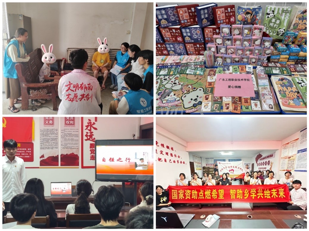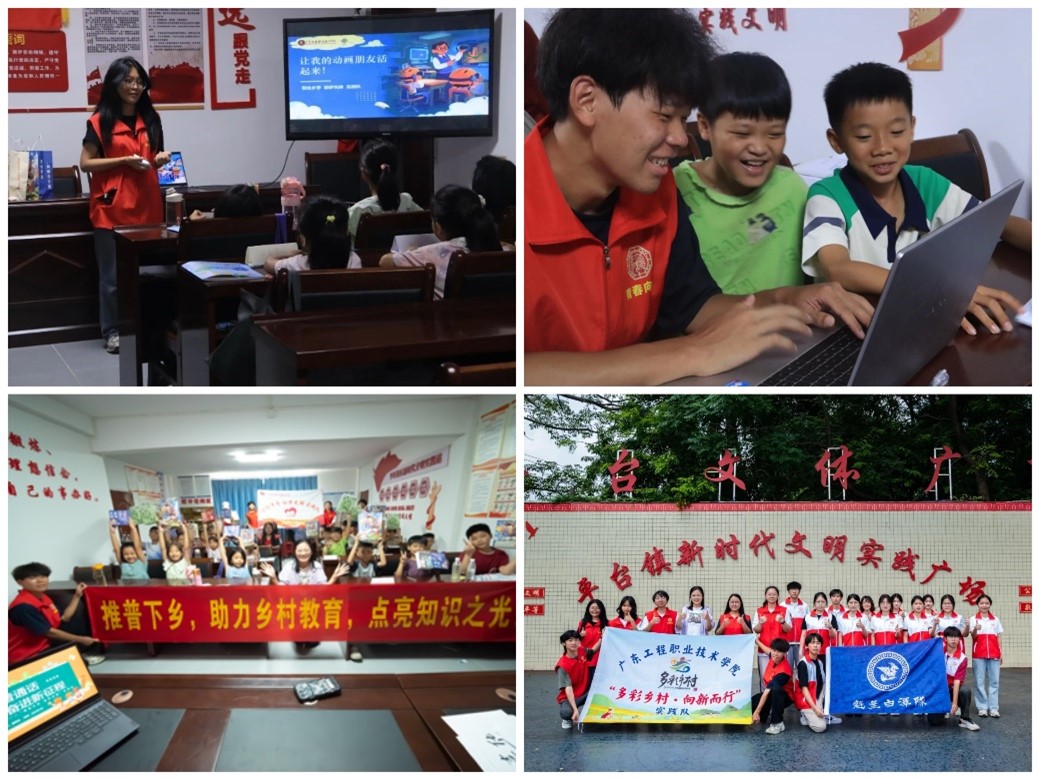 七月流火,青春灼灼。7月12日至18日,广东工程职业技术学院智能工程学院“智绘乡学 助梦先锋”实践队、“萤火互助”百千万工程突击队积极响应国家关于引导青年学生“上好与现实相结合的‘大思政课’”的号召,深入落实广东省“资助政策下乡行”、“多彩乡村 向新而行”的活动部署,赴云浮市郁南县。团队以赤橙金绿青蓝紫七彩工程为行动坐标,将政策宣讲的“声音”、乡村振兴的“画笔”、青春服务的“热忱”融入美丽乡野,开启了一场集资助政策普及、生态环境保护、科技教育赋能、非遗文化传承等多维度于一体的实践行动,用青年担当为美丽乡村发展注入鲜活动能。