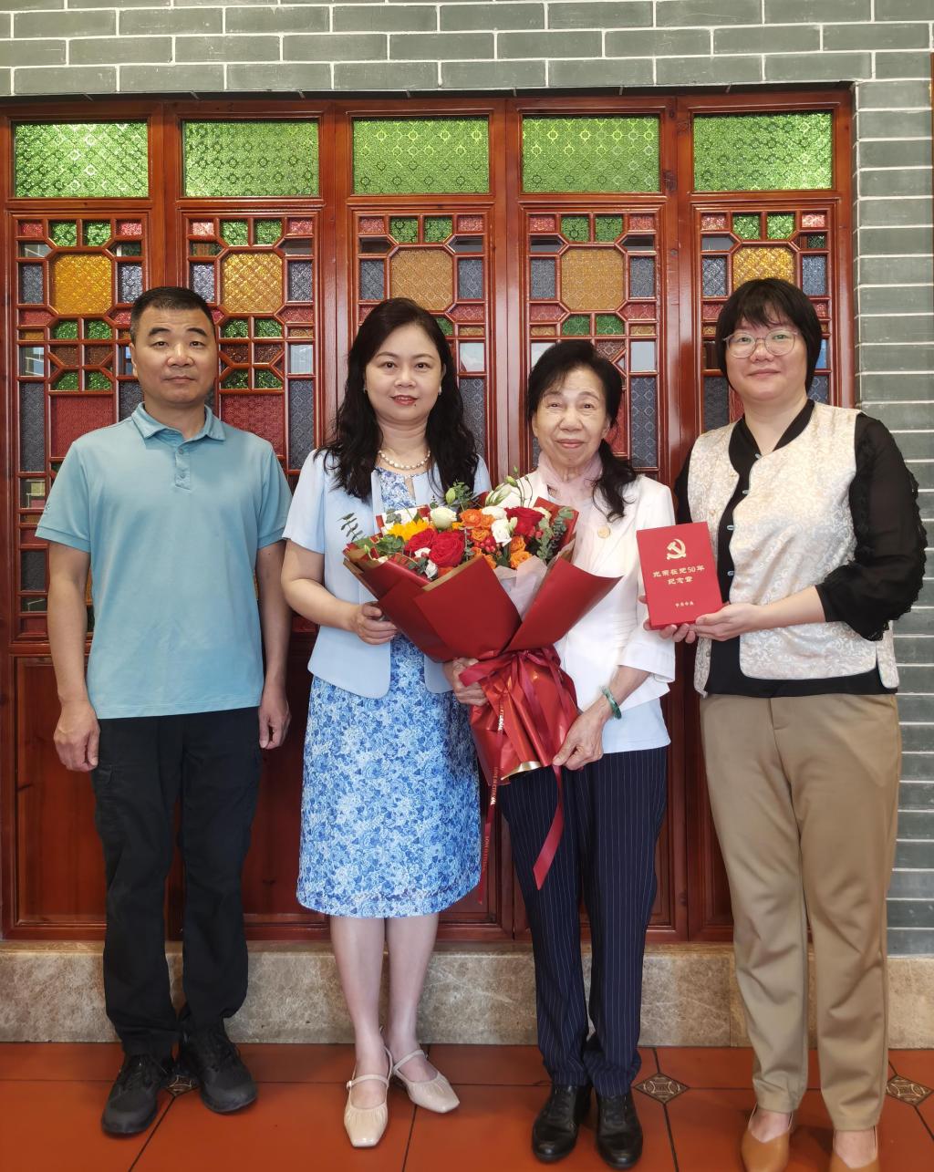 在中国共产党成立104周年之际,党中央为党龄达到50年、一贯表现良好的党员颁发“光荣在党50年”纪念章,我校退休老党员黎秋华同志获此殊荣。