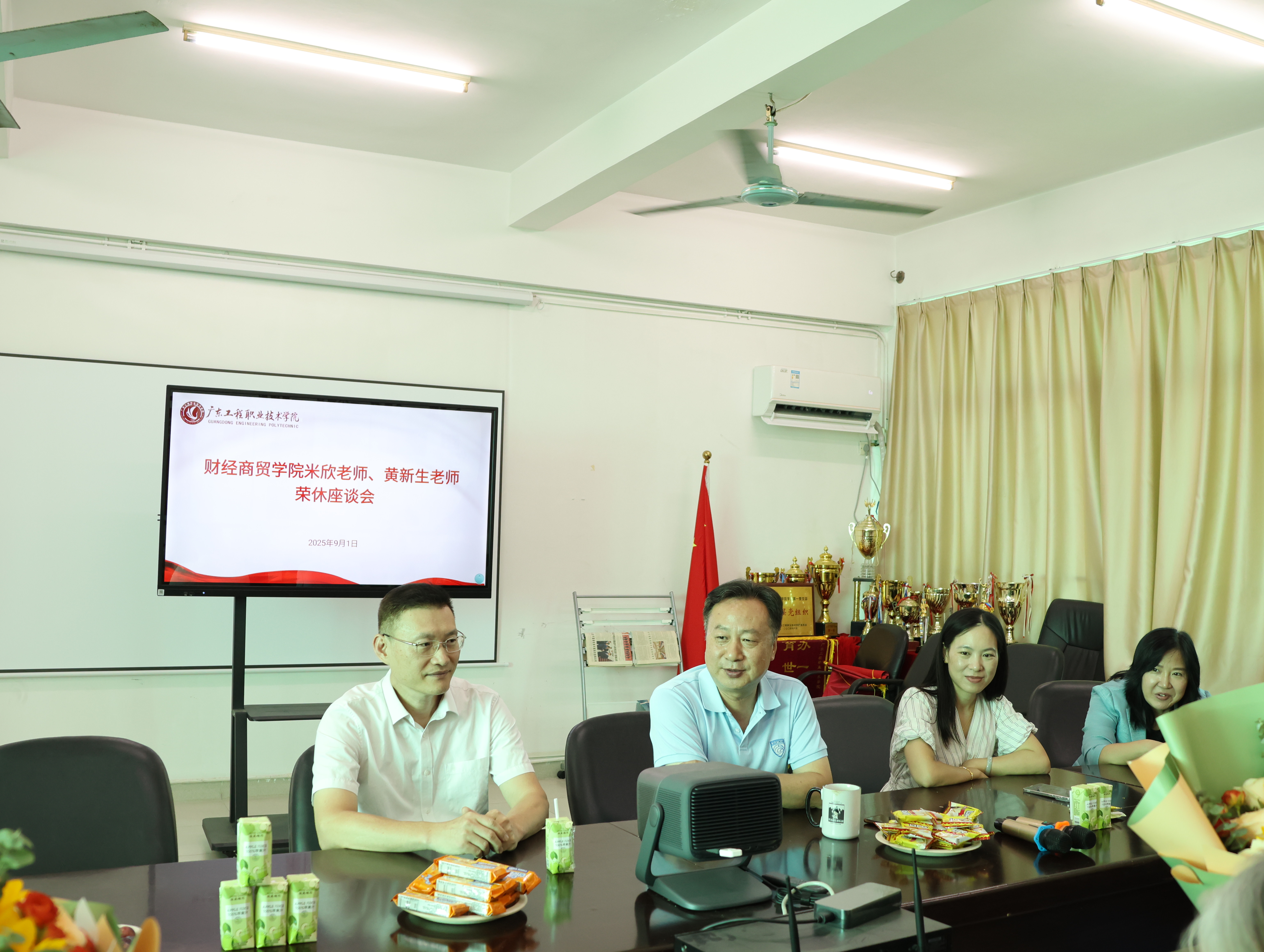 9月1日下午,财经商贸学院为米欣老师、黄新生老师举办了一场温馨而庄重的荣休座谈会。学院领导与教师代表齐聚一堂,共同回顾两位老师数十年的教育生涯,致敬他们为学院发展与学生成长所付出的心血与智慧。