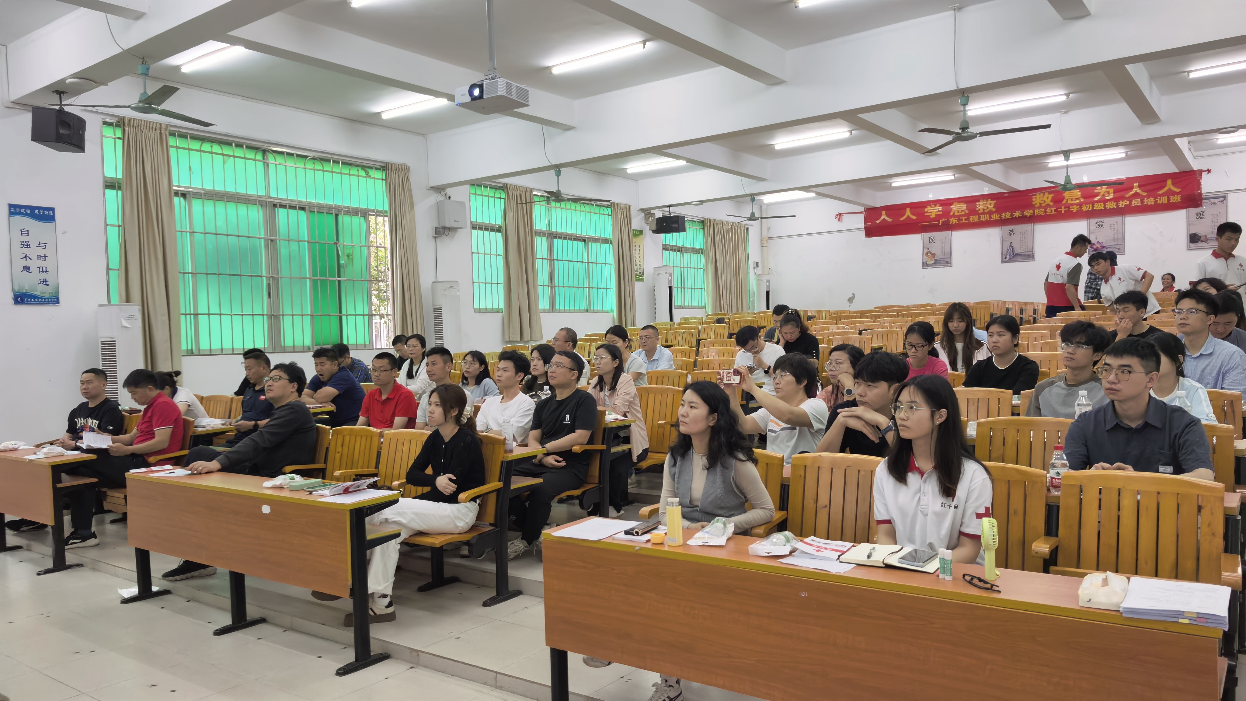 为进一步加强学校应急救护队伍建设,提高师生自救互救能力,全面普及应急救护知识,3月29日,我校在广州校区教学楼102室举办2026年第一期红十字初级救护员培训班。由总务后勤部(保卫部)主办,行政教辅、专职教师、学生及安保等相关人员共50人参加了培训。