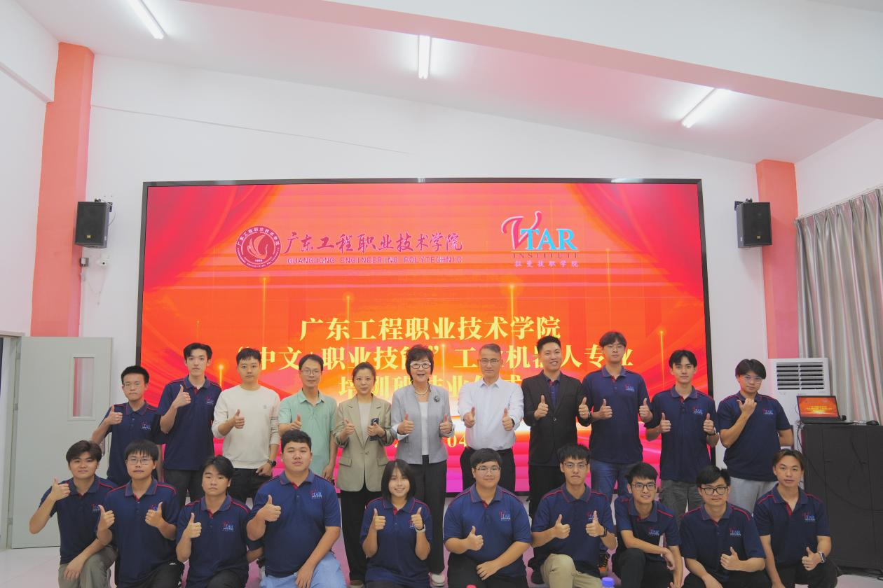 4月3日上午,广东工程职业技术学院与马来西亚拉曼技职学院共建的“中文+工业机器人技术”(马来西亚班)结业仪式在省职教城校区教学楼Q3-520室举行。学校党委书记叶忠明,拉曼技职学院首席执行官陈清凉(Tan Cheng Liang)出席仪式。仪式由国际教育学院副院长邱志远主持。