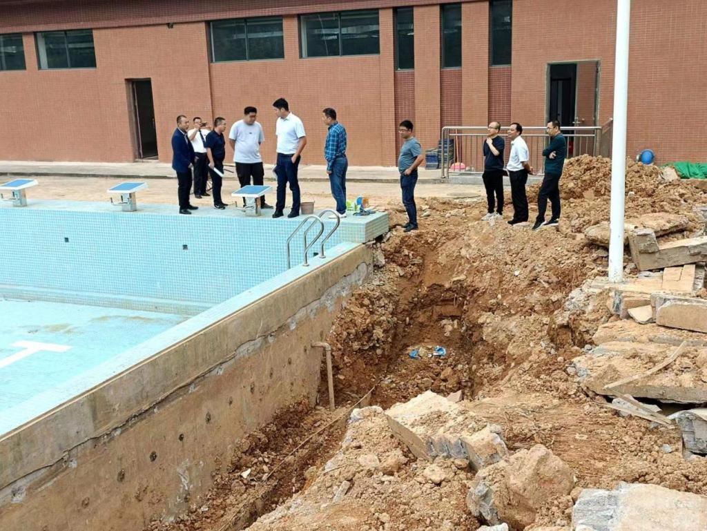 查看游泳馆施工现场