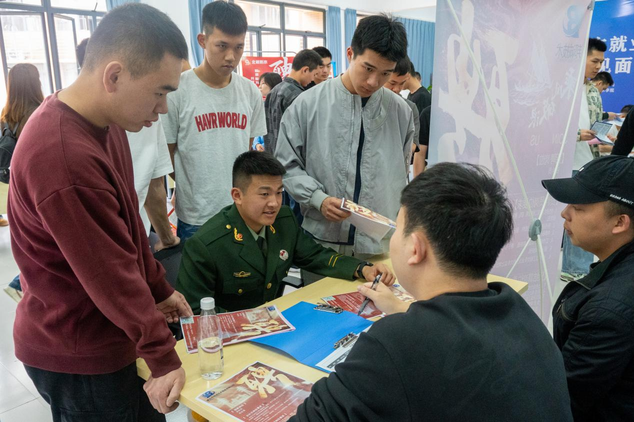 为搭建精准高效的就业对接桥梁,切实破解退役士兵就业难题,培训期间举办了两场专场招聘会,提供多领域的就业岗位,搭建起从“战场”到“职场”的精准对接平台,助力退役士兵就业“零距离”,实现“培训+就业”无缝衔接。第一场招聘会在学校培训基地顺利开展,各企事业单位通过政策宣讲、岗位推介及面对面洽谈等形式与学员互动,现场氛围热烈有序。第二场招聘会在高新区开展,依托其产业集聚优势,新增设企业产品展览环节,让参训士兵通过参观展览,直观了解企业实力与产业趋势,拓宽就业视野、明确就业方向,实现企业需求与士兵就业意愿的高效匹配。两场招聘会邀请中国移动清远分公司、广东长高通信服务有限公司、广东弘兴食品有限公司、碧桂园生活服务集团股份有限公司等31家企业参会,提供近400个就业岗位,为退役士兵铺就了精准契合的就业通道,助力退役士兵顺利实现角色转型,开启职场新征程。