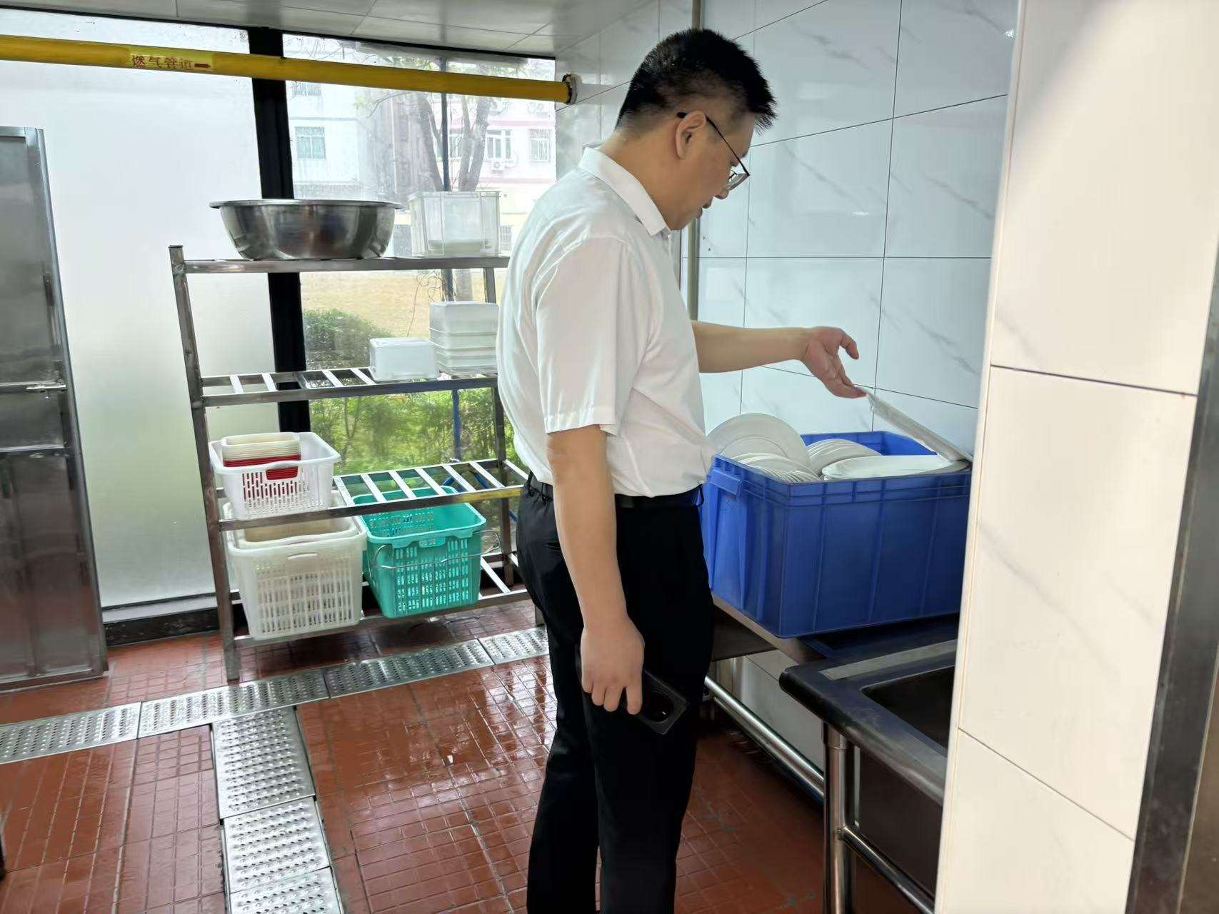 张永强一行先后到学校食堂、学生宿舍、南侧在建工地、设备房、监控中心等区域进行实地查看。检查组每到一处,便详细了解开学相关后勤保障的落实情况,与留校学生亲切交谈,详细询问同学们的假期生活、新学期规划。对食堂食品安全及供餐食材准备、在建项目施工进展、交通安全、消防安全、生产安全等进行重点检查。张永强在检查中强调,各单位要进一步提高政治站位,压实主体责任,以“时时放心不下”的责任感,细化工作举措。持续完善常态化安全巡查机制,做到 “动态清零”安全隐患,全力为师生提供一个安心、整洁、舒适的学习生活环境,确保2026年春季学期平稳有序、安全顺利开学。