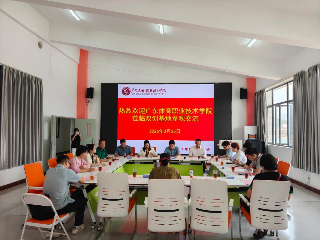 2026年3月25日上午,广东体育职业技术学院社会体育学院党总支书记纪铭毅、体育管理学院党总支书记何鸿涛一行到访我校省职教城(清远)校区,实地参观大学生创新创业孵化基地,并就创新创业教育工作开展座谈交流。会议由创新创业学院院长黎惠生主持。